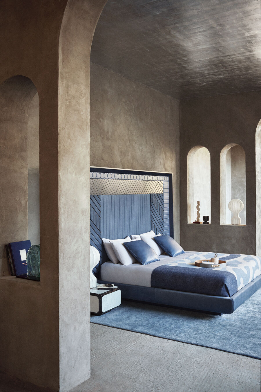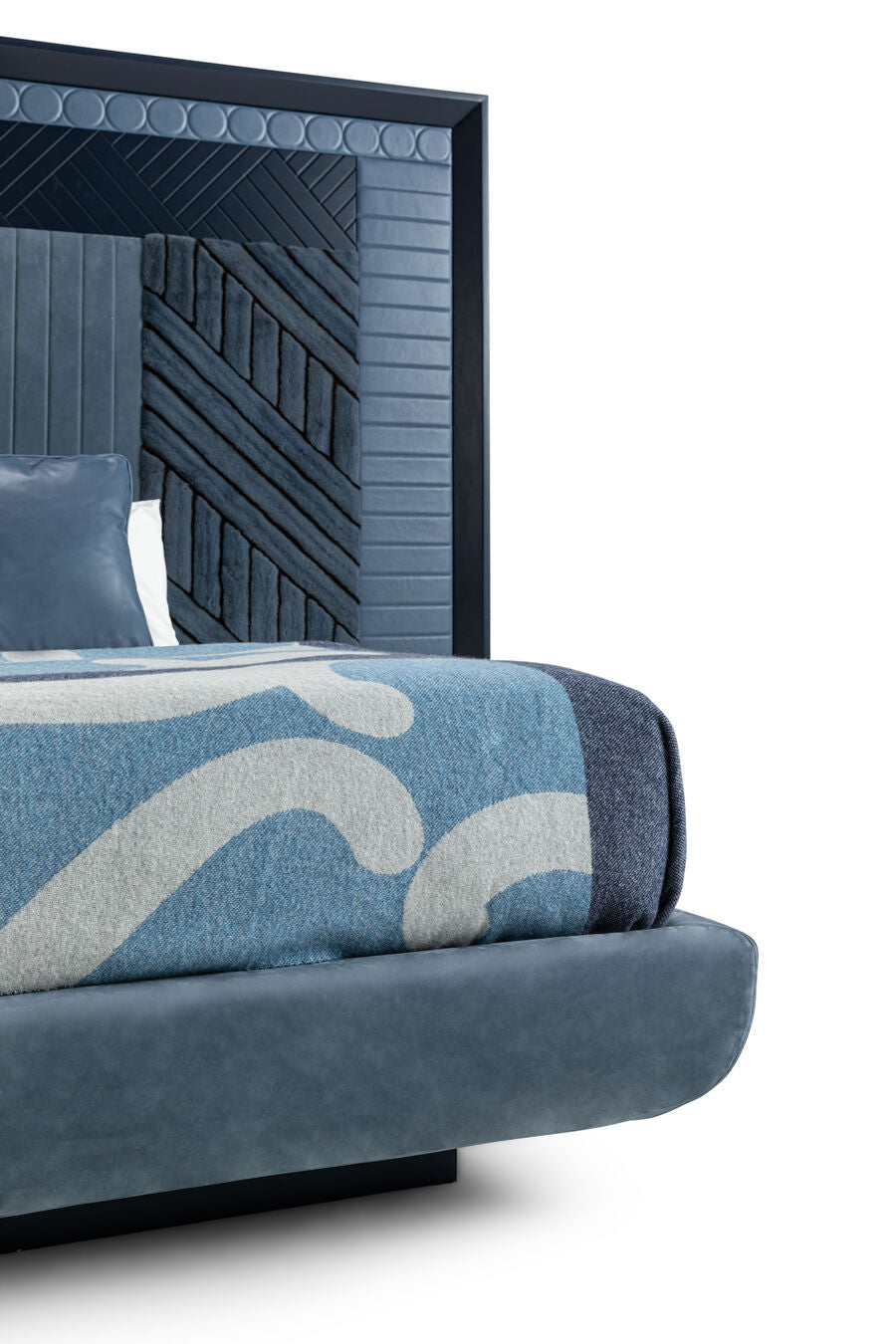 | description | With its eye-catching inlaid headboard, the Landscape bed by Marcel Wanders is the undoubted star of the bedroom. The matt black-lacquered bedhead frame encases an elegant geometric quilted motif made up of an unconventional selection of materials from shaved mink to leather. The upholstery colours range from blue to Fendi yellow, from green to amaranth, while the padded wooden bed frame is upholstered in leather in the same shade. |