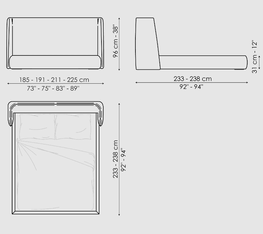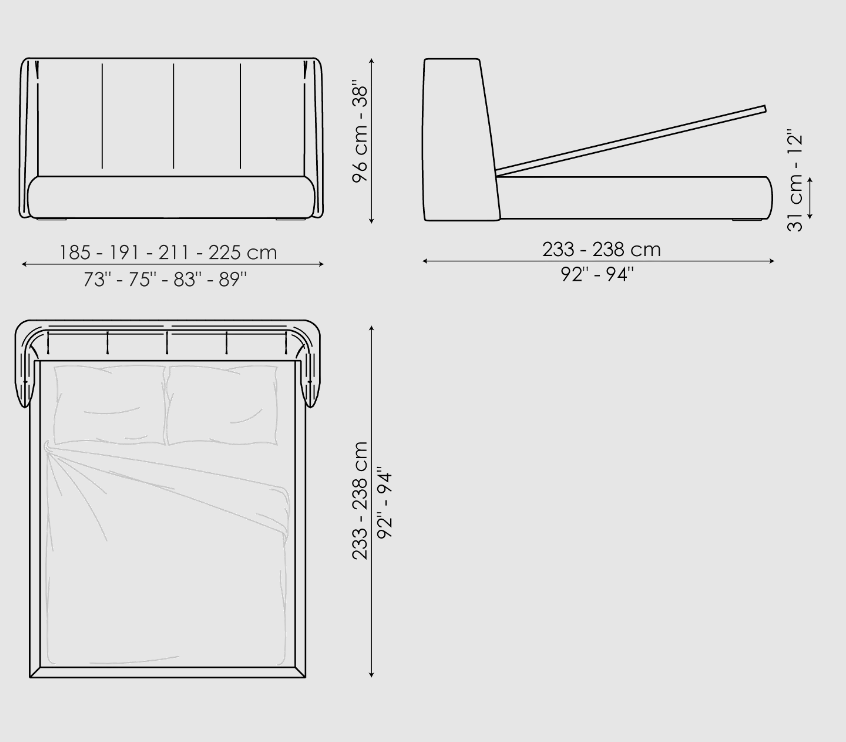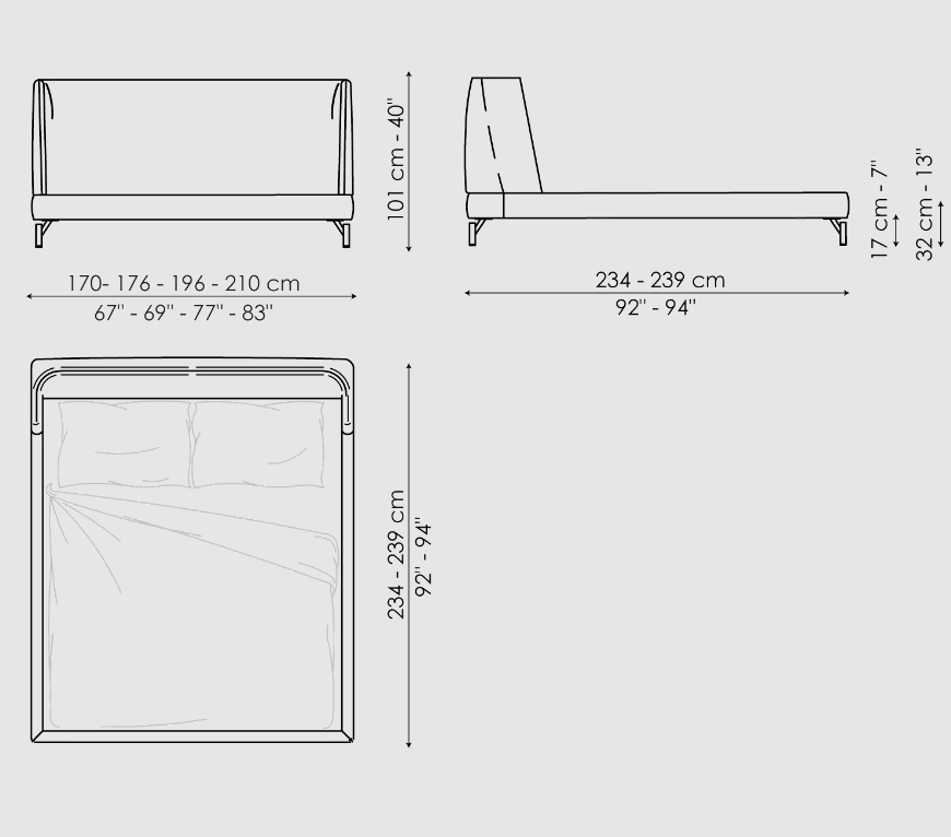 Size | L170/176/196/210*W234/239*H101cm L185/191/211/225*W233/238*H96cm L185/191/211/225*W233/238*H160cm |