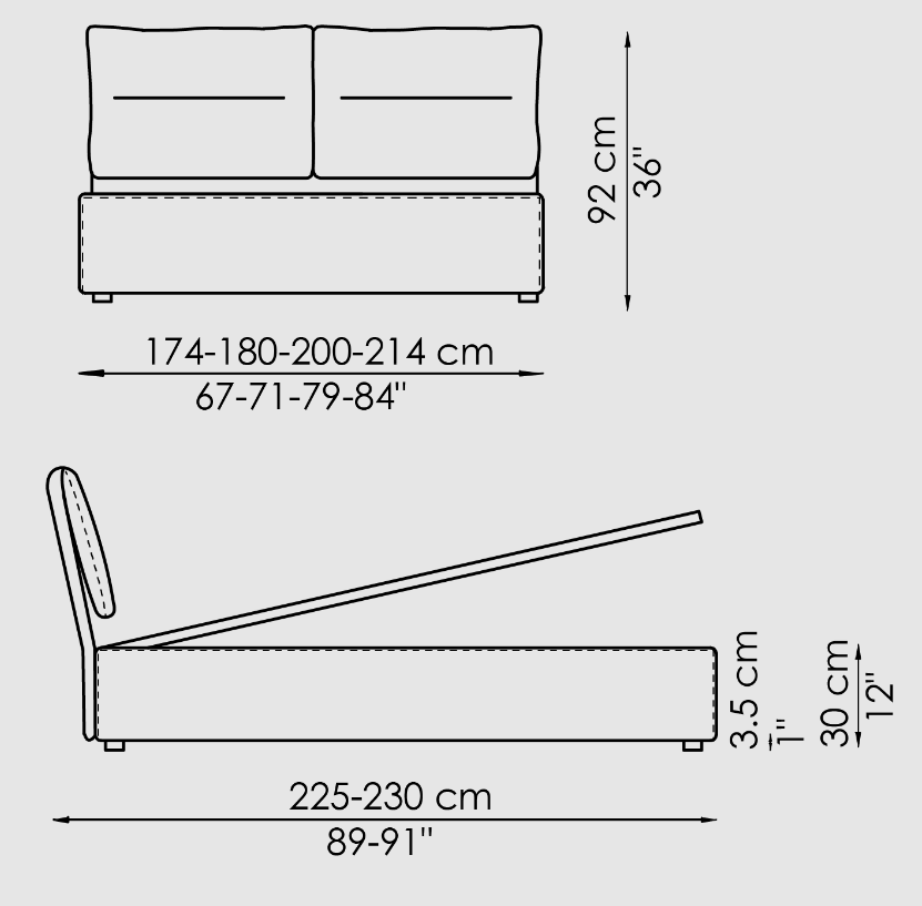 Size | L174/180/200/214*W225/230*H92cm |