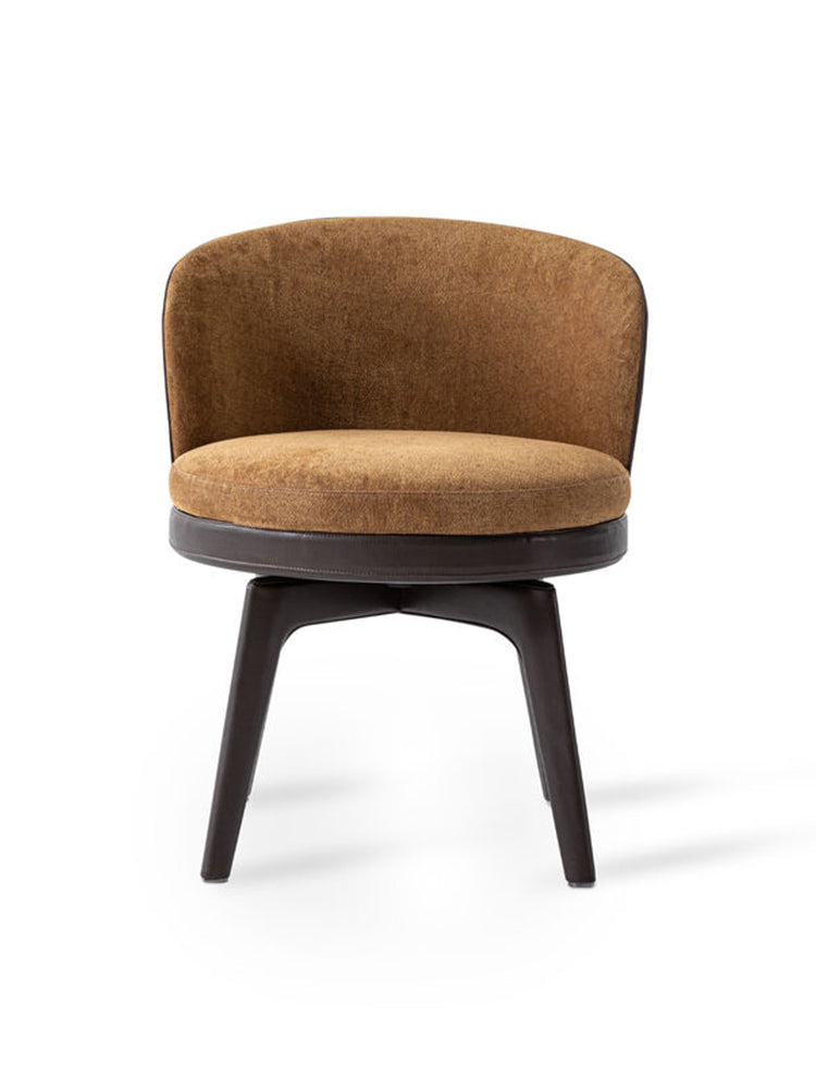 The Doyle chair adds a classic, elegant touch with its solid wooden frame in a leather or wood finish, upholstered seat and backrest and metal feet. Designed for everyday comfort, it can be customised with fabric or leather to create an understated, versatile piece for any living space. |