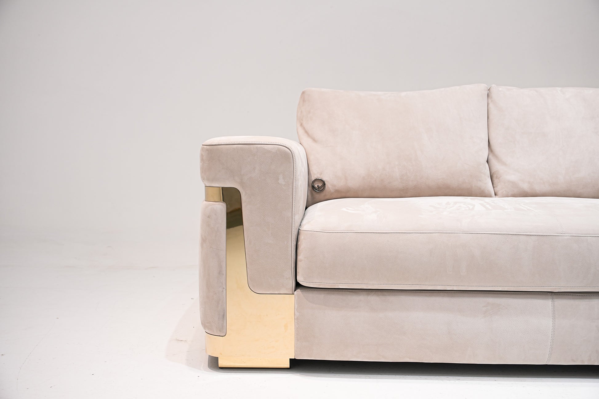 | Description | The band of quilted leather with the all-over FF logo outlining the backrest cushions forms the feature of the new Ray sofa. Sporting clean-cut lines, this elegant sofa with removable covers can be customised down to the smallest detail. The metal plating embracing it, for example is available in steel and gun-metal, Bronze Shadow, polished brass or Palladium finishes. |