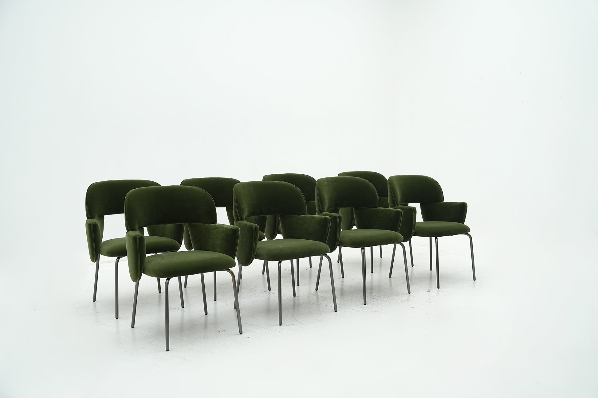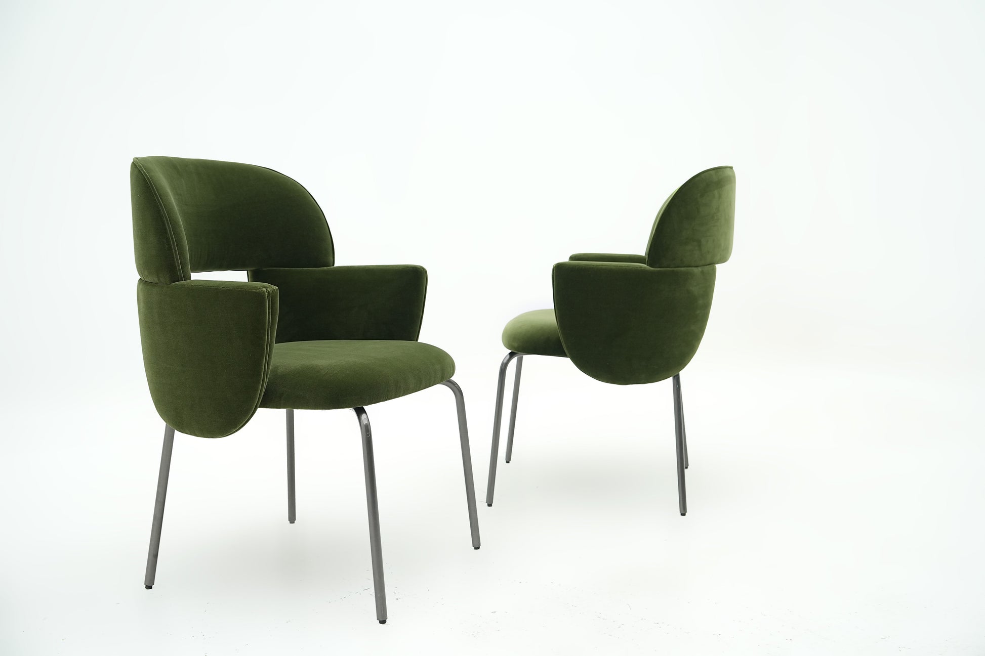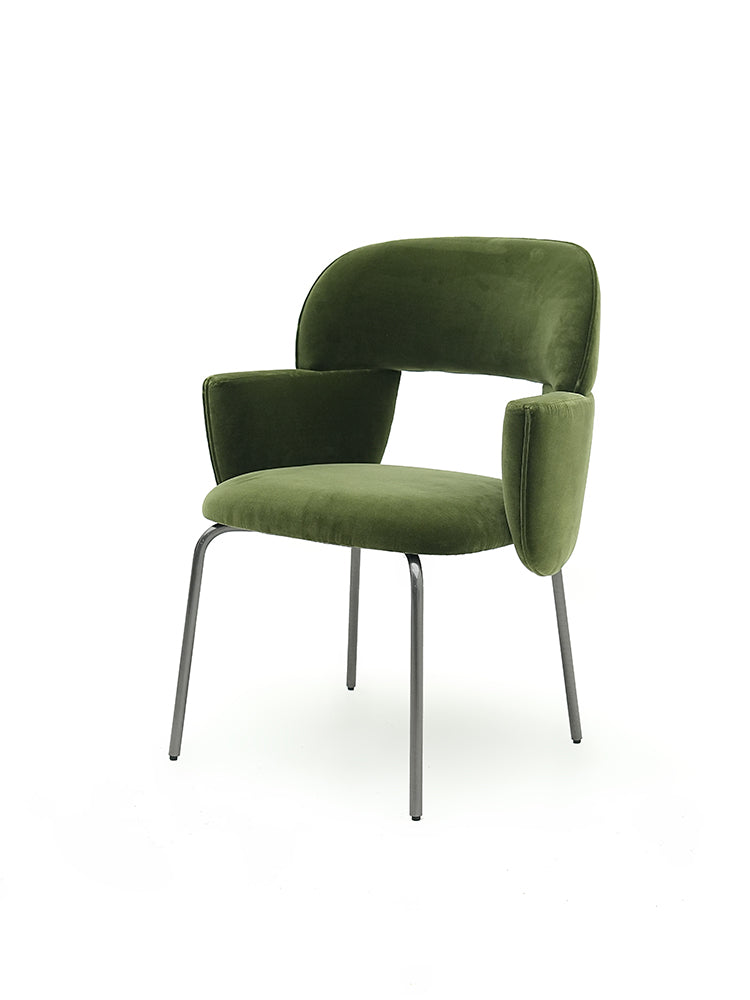 The harmonious form that defines the Pecan chair by Atelier Oï is accentuated by the perfectly-pitched combination of materials, with jacquard fabrics and soft leather complementing the almost-severe aspect of the metal base. With its invitingly soft padding, the Pecan chair offers outstanding comfort and contained dimensions, making it ideal for cosy nooks, while able to command attention in larger spaces. |