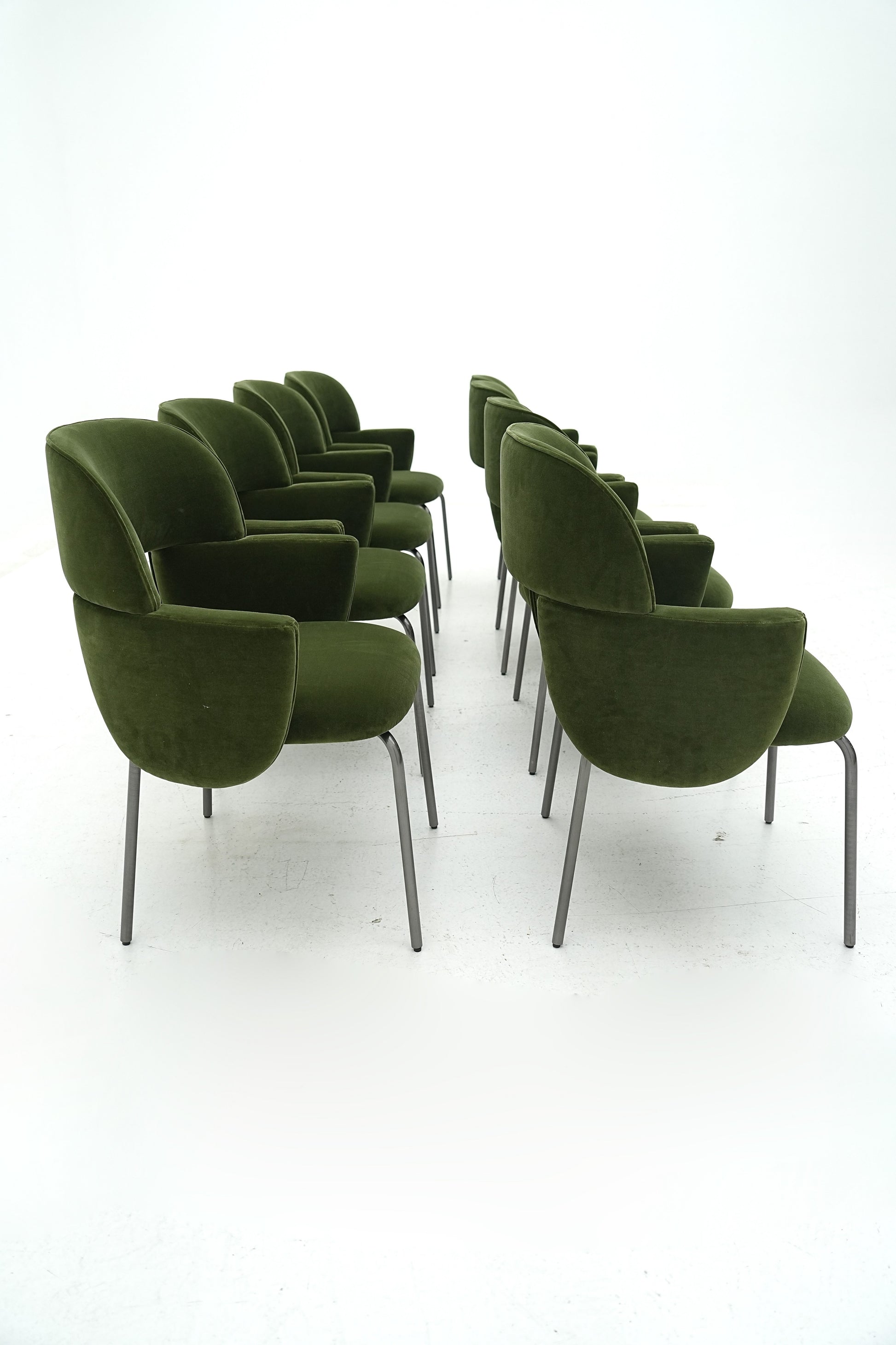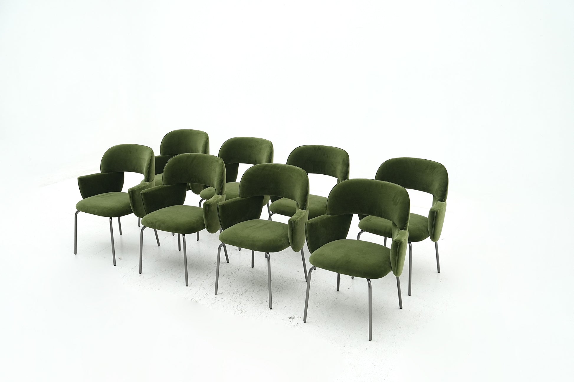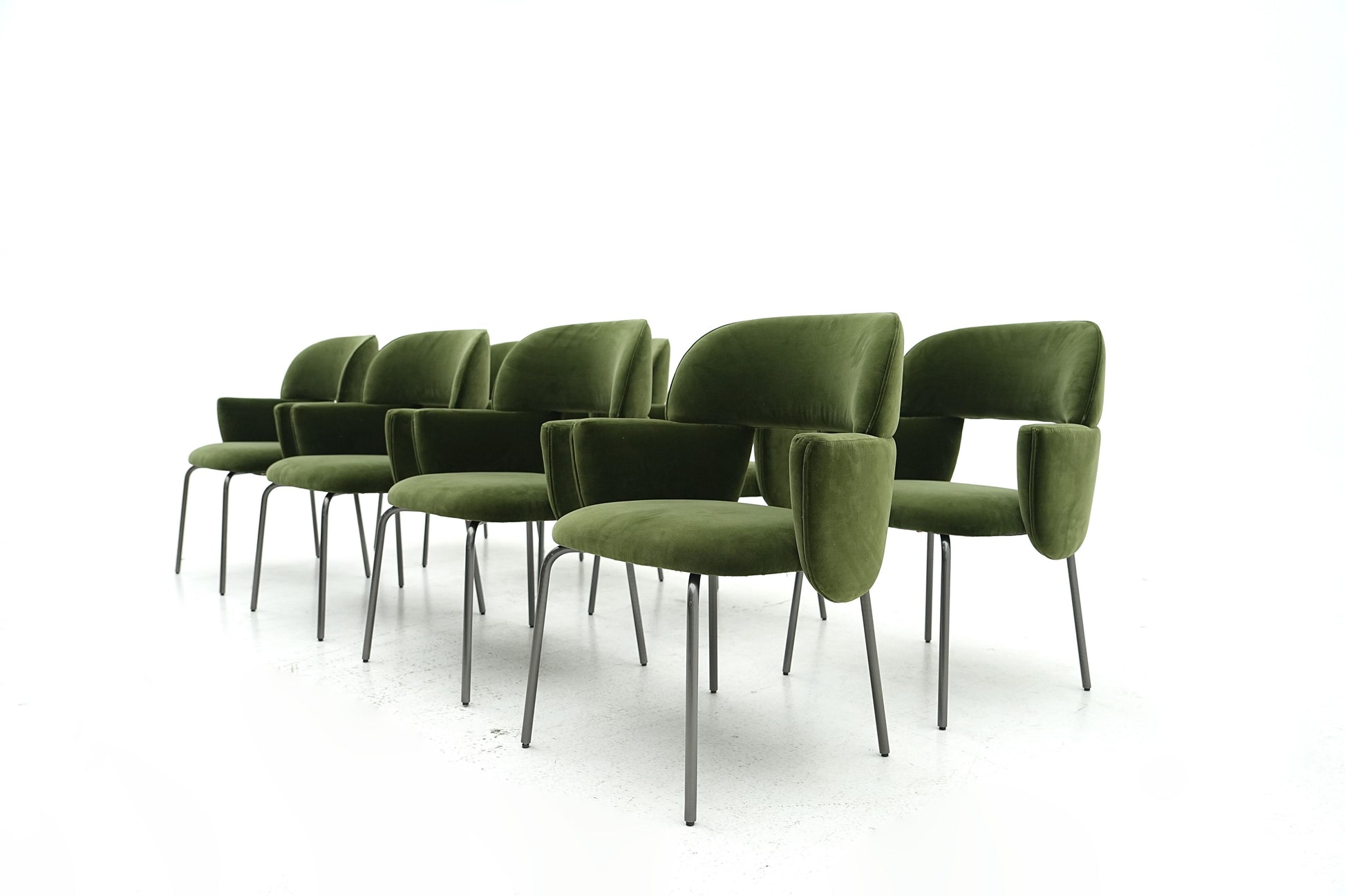The harmonious form that defines the Pecan chair by Atelier Oï is accentuated by the perfectly-pitched combination of materials, with jacquard fabrics and soft leather complementing the almost-severe aspect of the metal base. With its invitingly soft padding, the Pecan chair offers outstanding comfort and contained dimensions, making it ideal for cosy nooks, while able to command attention in larger spaces. |