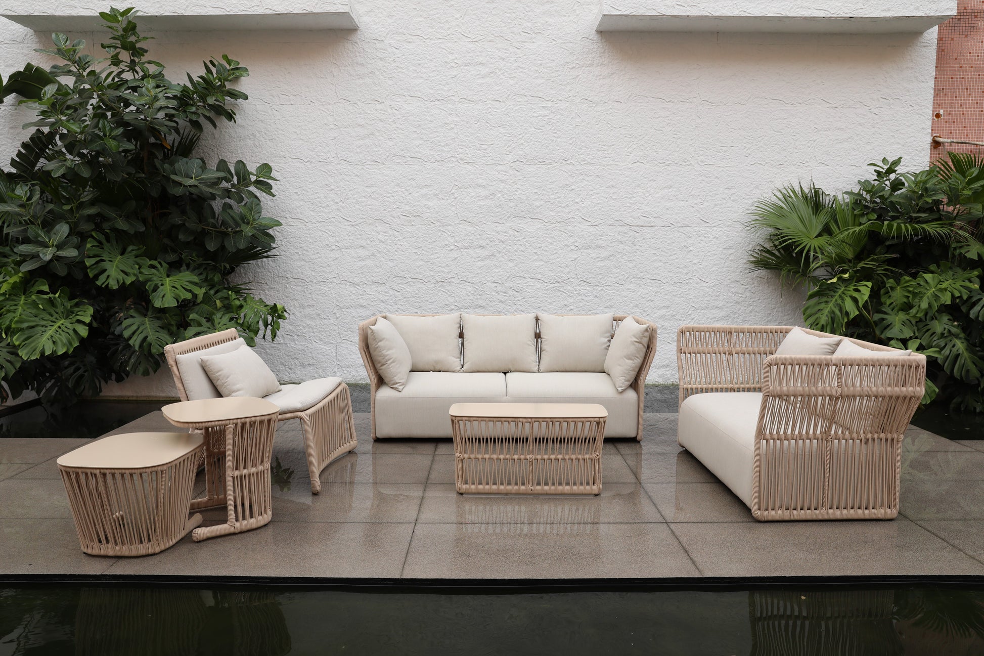 Material | Stainless Steel/Aluminum, Rope/Rattan, Waterproof Sponge |