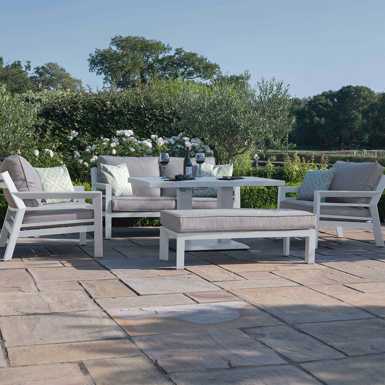 Equipped with excellent ergonomics. this white New York Sofa Set is available as a 2 or 3 seater and has thick. padded cushions for high-levels of comfort. All pieces feature a frame of powder-coated aluminium which is both maintenance-free and conveniently lightweight.