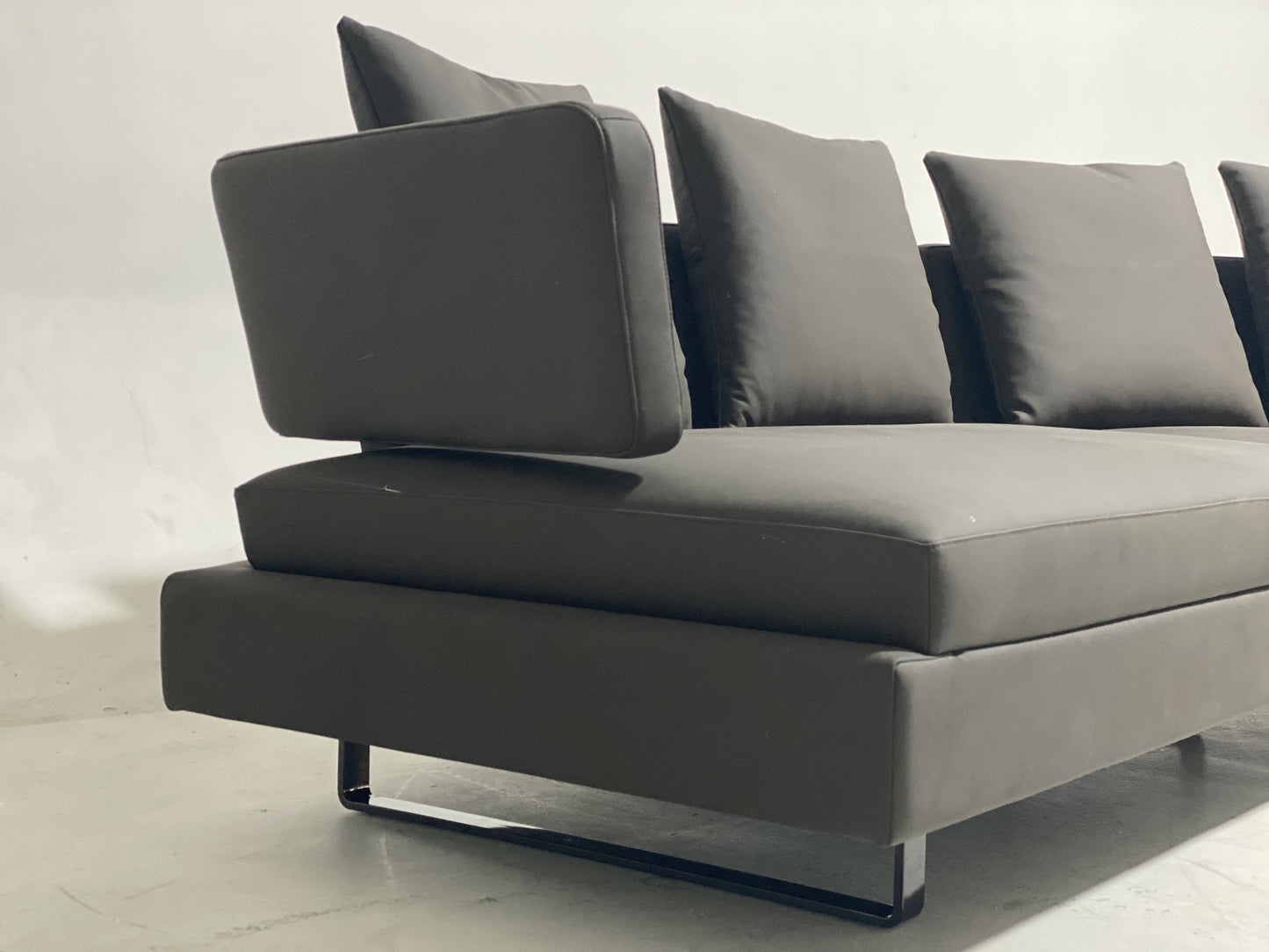 description | Designed to create the setting for leisure activities, Arne stands out for the curved shape that envelops the user. It is an invitation to socialise and share moments together, to converse and watch television shows on a large screen. It has all the features of the protagonist designed to be centrally placed in the room and, even placed against a wall, it never loses its image of comfort and lightness conveyed by the aluminium supports on which both seat and backrest seem to be suspended. |