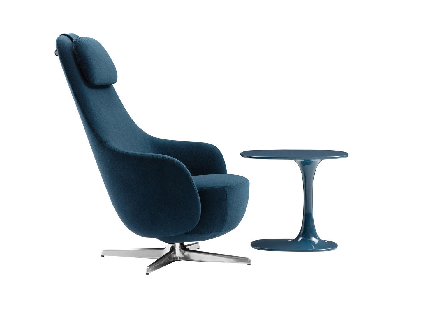 description | Naoto Fukasawa continues his research on upside-down truncated cone shaped seats, and, for this project addresses B&B Italia’s need to explore the seating with arms. Two forms are ergonomically designed and developed to obtain a relaxing easy chair with a high back and headrest, and a conversation armchair with a low back. Both armchairs have a rotating base and visible metal zipper in the back that, as with the iconic Papilio series, allow to remove the covering, available in fabric or leather. To these seats are added a third form, a pouf on top of which a tray element can be supported, allowing complementary use as a table. |