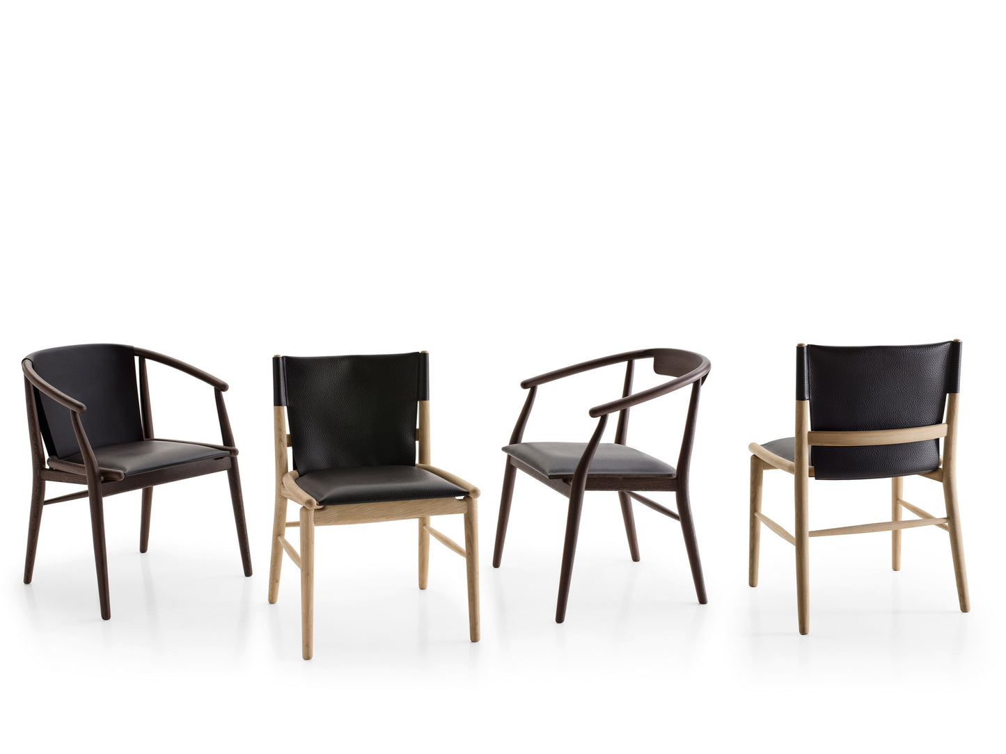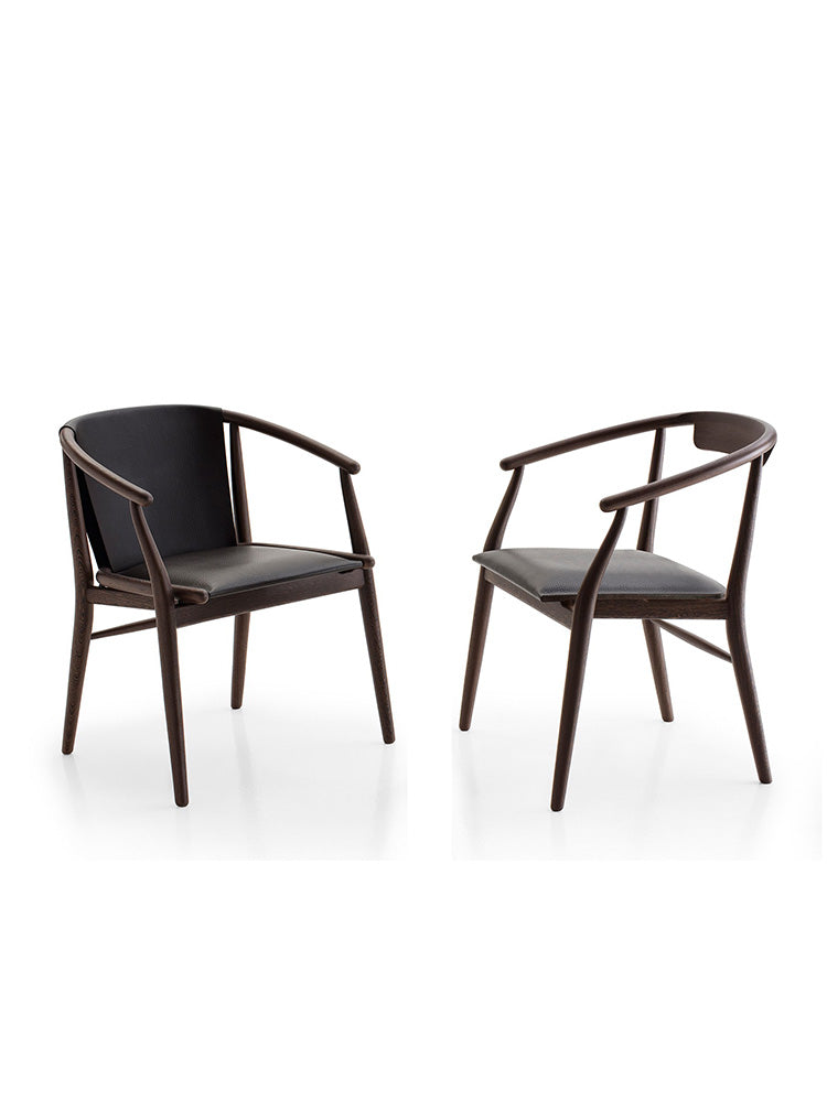description | Antonio Citterio interprets the classic design of Chinese chairs in a contemporary key, rediscovering the craftsmanship of turned and curved wood, added to leather to make seats and backs that enhance the design. For the Jens chair, designed by Antonio Citterio with armrests in two versions and without armrests, the choice of wood in oak or natural wenge offers different shade variants. |