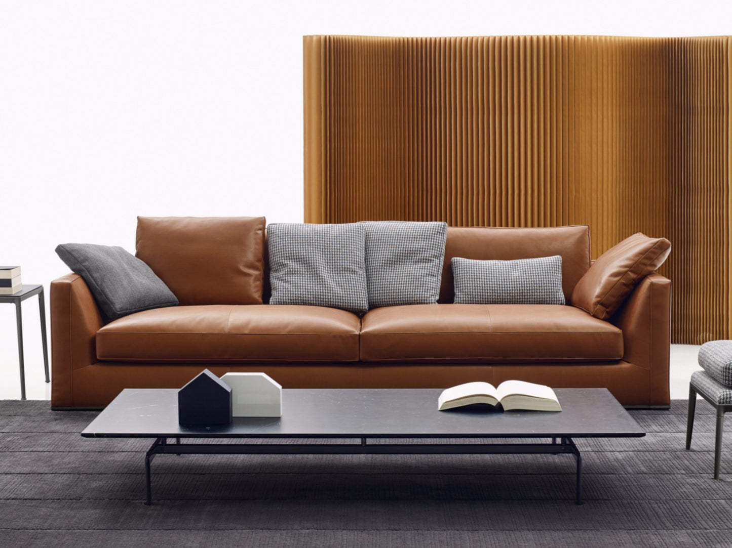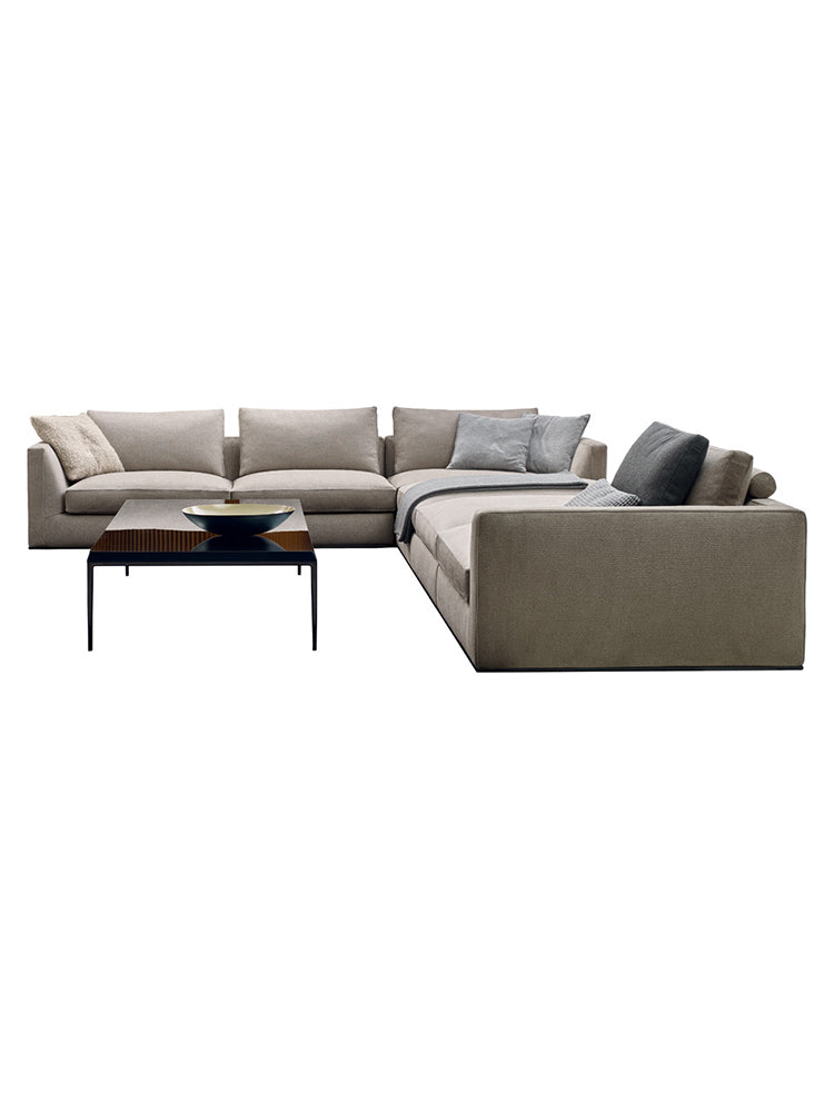 description | Richard is the new seating system which distinguishes itself by its balanced contemporary design, with references to classical atmospheres. Its modular theme is developed by 76 elements in two depths: 90 cm for more formal and contained solutions, and 120 cm for larger compositions and more informal seating. The extreme flexibility of the system and the ease with which the different elements can be assembled allows the living space to be interpreted in the most varied configurations, from formal to more relaxed, with seats, benches, ottomans and chaise longue. The wide range of covers, in fabric with matching tones or contrasting profiles, and in leather with profiles in the same leather, allows an even greater level of customisation, offering monochromatic or contrasting solutions. The structure is emphasised by a metallic profile at the base, either black chromed or pewter painted. Four sizes of optional cushions (65x50 cm, 48x48 cm, 55x30 cm, 38x38 cm) increase the comfort. |