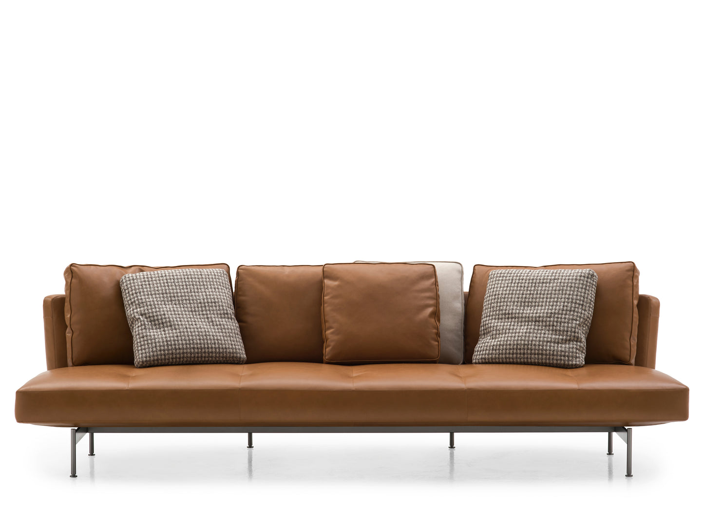 description | SAKé signals the beginning of Piero Lissoni’s collaboration with B&B Italia. The design begins from a strongly contemporary seating system distinguished by a careful search for formal balance. Seats in three sizes (175, 210 and 270 cm), with embracing or linear backs and arms of various dimensions added harmoniously to create a sofa adapted to the customer’s space and personal taste. The system is enhanced with a chaise longue element (105 x 135 cm) that lends itself to various interpretations: as the terminal element in a linear composition, with a more enveloping back and with the addition of arms, it can stand on its own or, alongside another chaise lounge, it can create a sofa with deep seating. The details of the cushions and supporting base contribute to the design lightness. The seat cushion has refined modular stitching, ranging from 35 or 45 cm; the back cushions, available in two sizes, are outlined by profiled bands. The seating system support base is made of cross-bars with rounded steel legs connected to each other by a bar. All this is finished in pewter lacquer paint. This seating system also offers a sofa bed (150 x 210 cm), the only one in the B&B Italia collection, adopting the other sofas seating and back elements. The interchangeable right or left arm can serve as a headboard when, with a simple translation movement of the seat and the overturning of the back, the sofa becomes a single bed. |