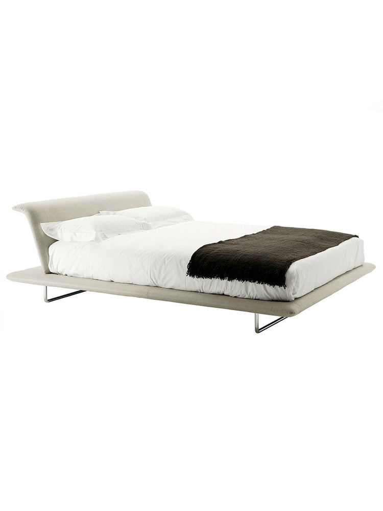 description | An essential look and a base and headboard in a drastically reduced size are the distinguishing features of a project by di Naoto Fukasawa which conveys a great sense of lightness, thanks to the base projecting from the whole perimeter of the bed. The top of the back panel inserted into the base features a short turned-up section where you can rest your arm comfortably when you are seated. Two tubular metal supports hold up the frame; a version is available with casters at the rear that make it easy to move. The base frame contains a metal mesh with pre-curved beech wood slats. |