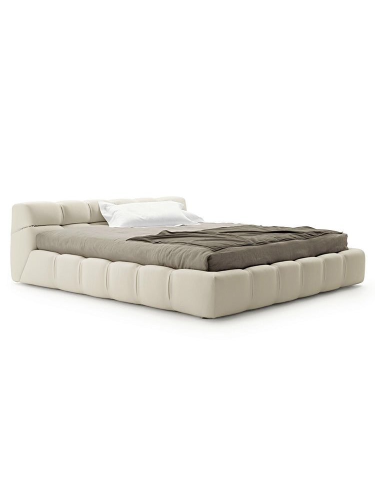 description | Comfort and solidity, modernity and the bond with tradition expressed by citing the Chesterfield spirit and capitonné style. The leather or fabric cover is divided into squares, the distinctive feature of the series, on the base and headboard. With a base that goes down to the floor, it allows the internal space to be used as a convenient compartment. |