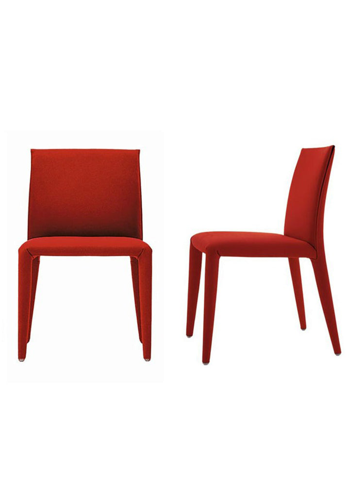 description | Its distinctive character, single material pieces, both in leather and fabric, allows it to be placed alongside a large variety of tables, which are not necessarily modern. When all is said and done, its lines fluctuate between memory and modernity, and its volumes between bulkiness and slenderness. The cover is removable, padded with a single piece of stamped foam, and comes in two different sizes. The larger version can be fitted with armrests. |