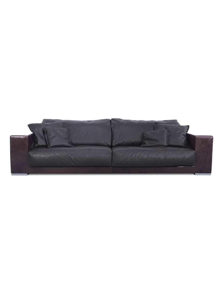 description | Budapest is a leather modular sofa designed by Paola Navone. Frame in honeycomb fir and poplar wood. Feet in brushed unfinished metal or matte gunmetal greycoloured, antioxidant protection with matte varnish. Differentiated density polyurethane foam filling with acrylic fibre covers. Springing with woven elastic straps of covered rubber. Seat cushions in washed and sterilized goose down with pad in differentiated density polyurethane foam insert. Back cushions in washed and sterilized goose down (pouf excluded). Cushions available in soft leathers only. |