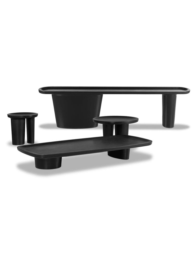 description | Calix is a coffee tables collection, available round and rectangular. Frame in solid lime wood. Glossy black shellac finish and matte scratched shelf. |