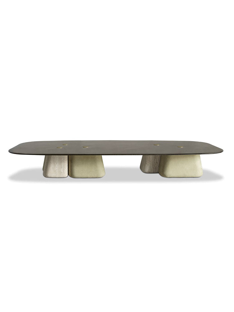 description | Fany is a square coffee table with glass top. Legs in matte Travertino White marble with water-repellent protective oil and leather-covered polimex. Details in satin brass-coated metal, in hand-finished burnished metal or in alpacca, with matte varnish. Adjustable feet. Bronze colour or smoked color fused glass top, carried out with a particular technique aimed to obtain imperfect surfaces. Available in bronze or smoked colour. Any surface blemishes, that are attributable to the naturalness of stones, can be resin-filled and are not to be considered as defects. Blocks and slabs visibly vary as these are natural stones; all pictures are just a rough guide. |