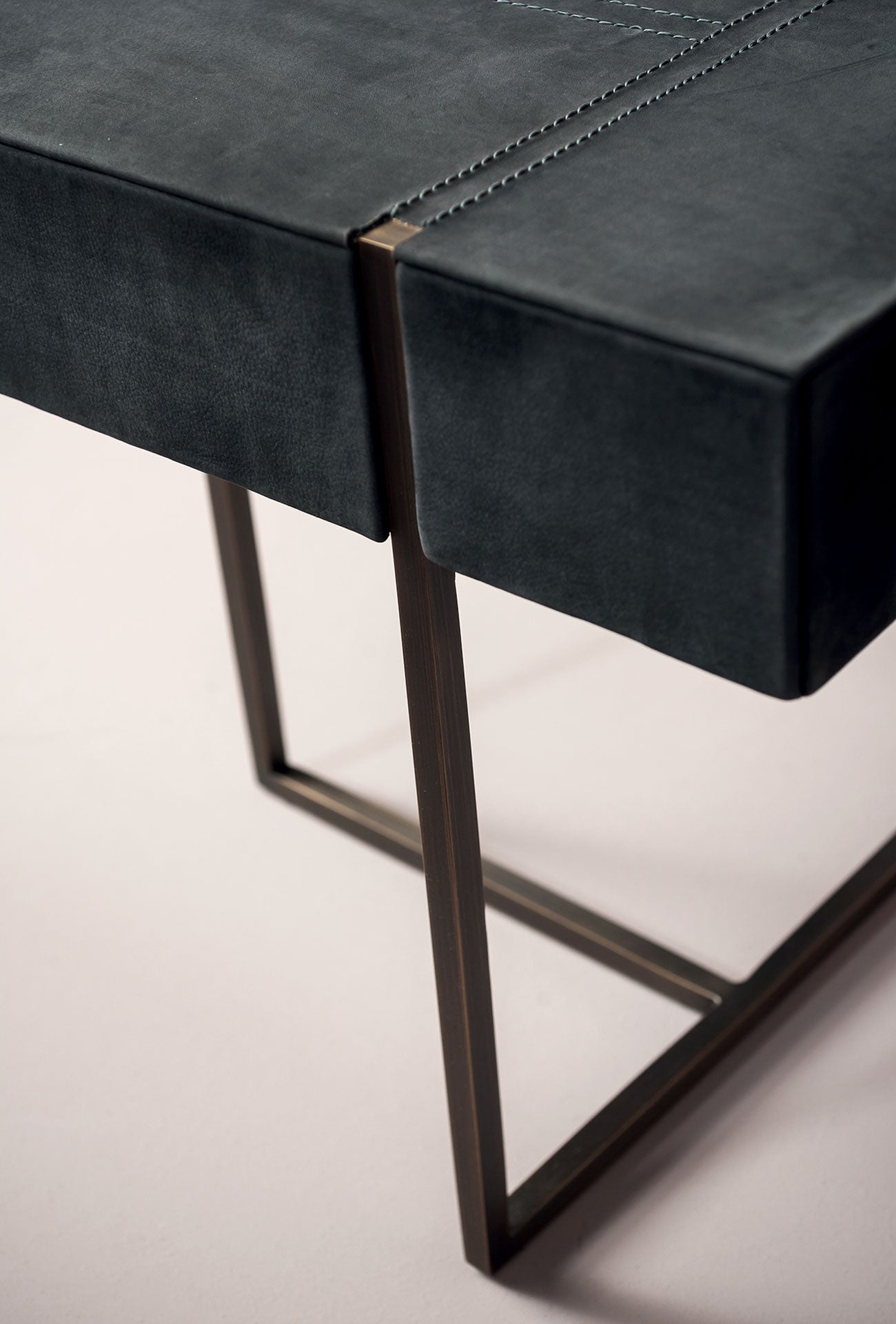 description | Night table with base in satin brass-coated metal, in hand-finished burnished metal or in satin nickeled metal, with matte varnish. MDF structure, canaletto walnut veneered. External structure in shaped aluminium sheets covered with leather. Drawers in solid canaletto walnut. |
