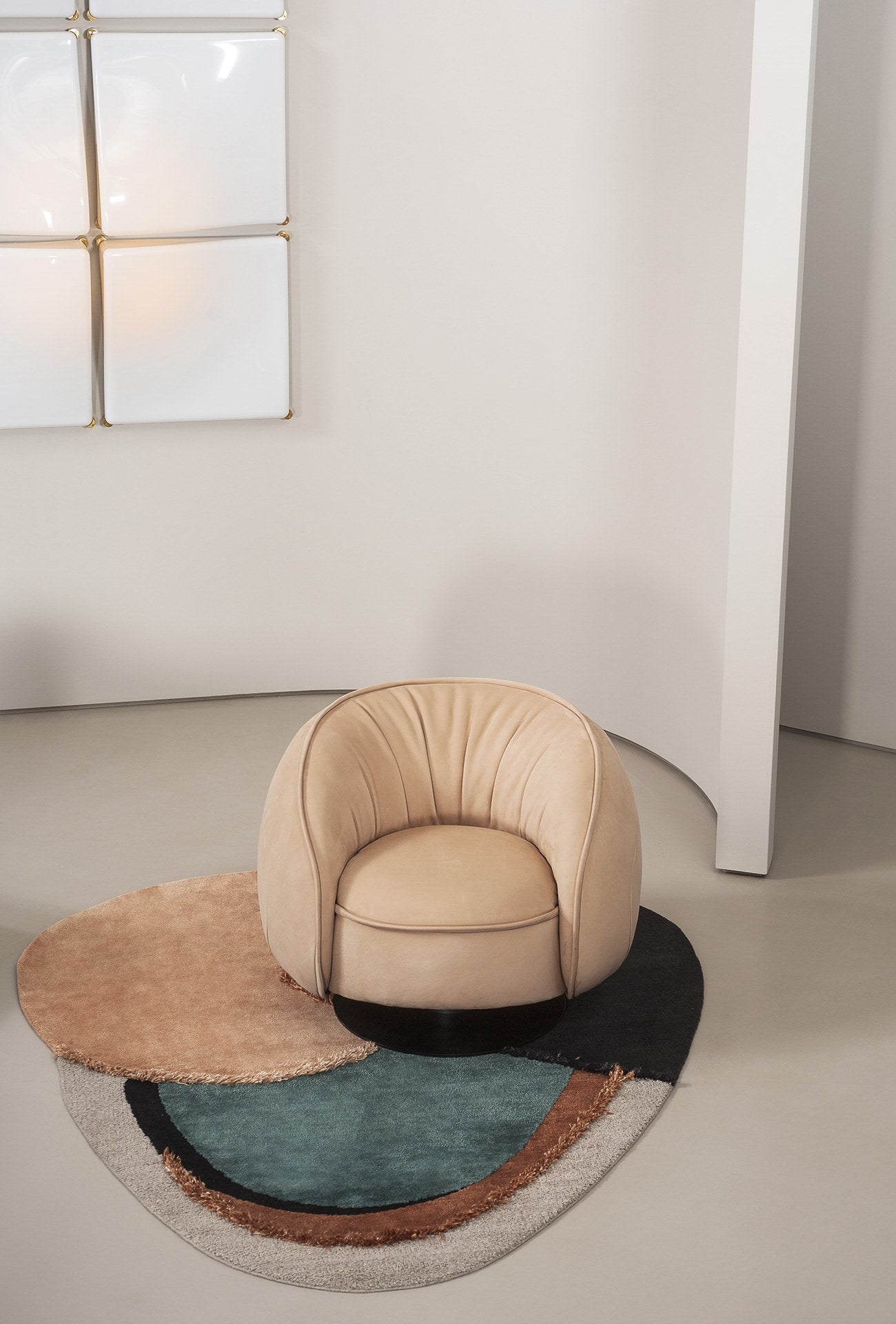 description | Leon is a leather revolving armchair designed by Draga&Aurel. MDF plywood frame. Differentiated density polyurethane foam filling with acrylic fibre cover. Springing with woven elastic straps of covered rubber. Black-stained underbody base. Armchair with hand-finished burnished metal revolving base |