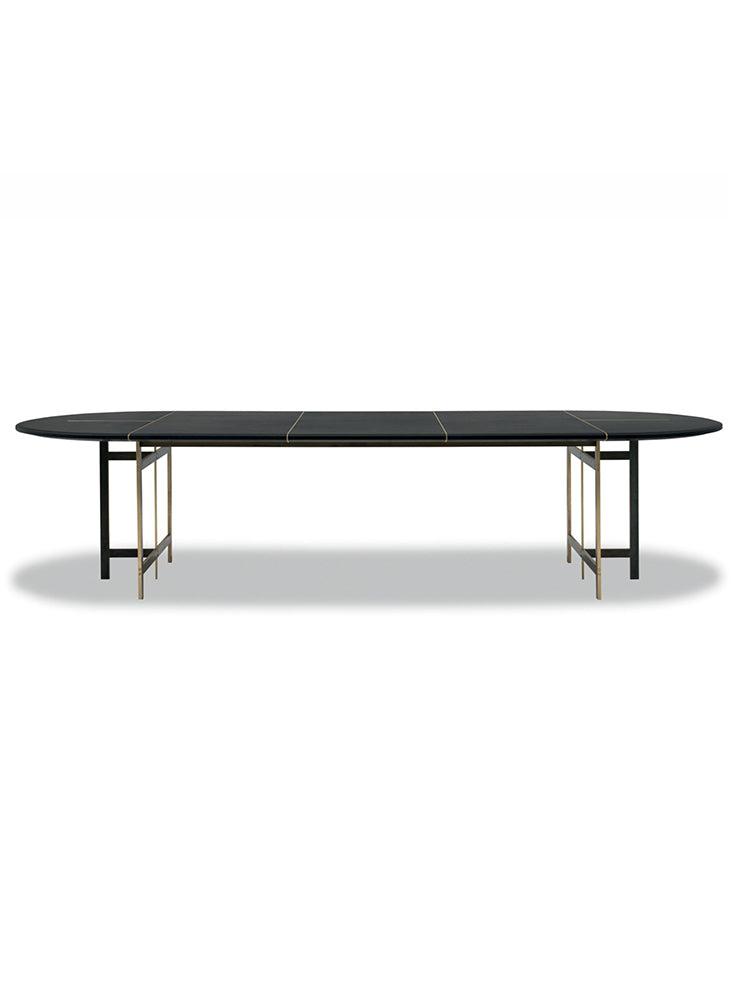 description | Metal base varnished with burnished effect and satin brass details. Leg connection plate in matte black metal. MDF top with reinforcing leather-covered aluminium sheets or, alternatively, stone top with water-repellent protective oil with reinforcing aluminium honeycomb support. Decorative inserts in satin-finished brass with wax finish. Top versions: glossy Bianco Gioia marble, Calacatta Oro marble, Ocean Storm marble, matte Polar White marble, Rosso Lepanto Hidro marble; Geode granite; Elegant Brown quartzite , Rocky Mountain quartzite. Any surface blemishes, that are attributable to the naturalness of stones, can be resin-filled and are not to be considered as defects. Blocks and slabs visibly vary as these are natural stones; all pictures are just a rough guide. |