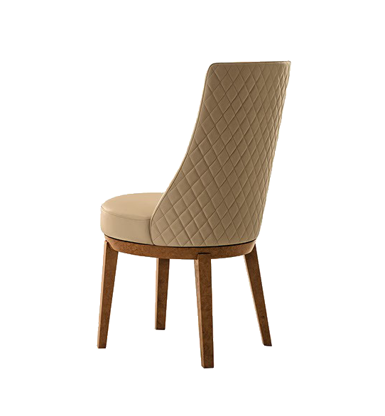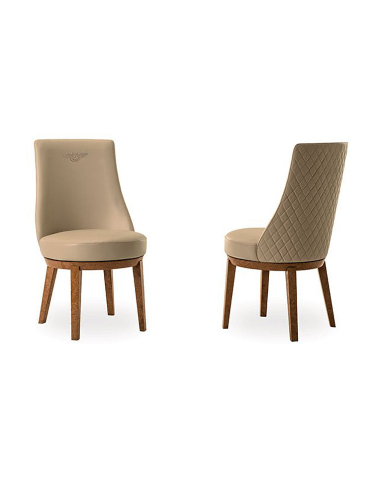 The Harlette chair exalts the value of the materials with which it was made. The legs are in solid beech veneered Burr Walnut briar-root, the seat is covered with fabric or leather, back with logo embroidery. |