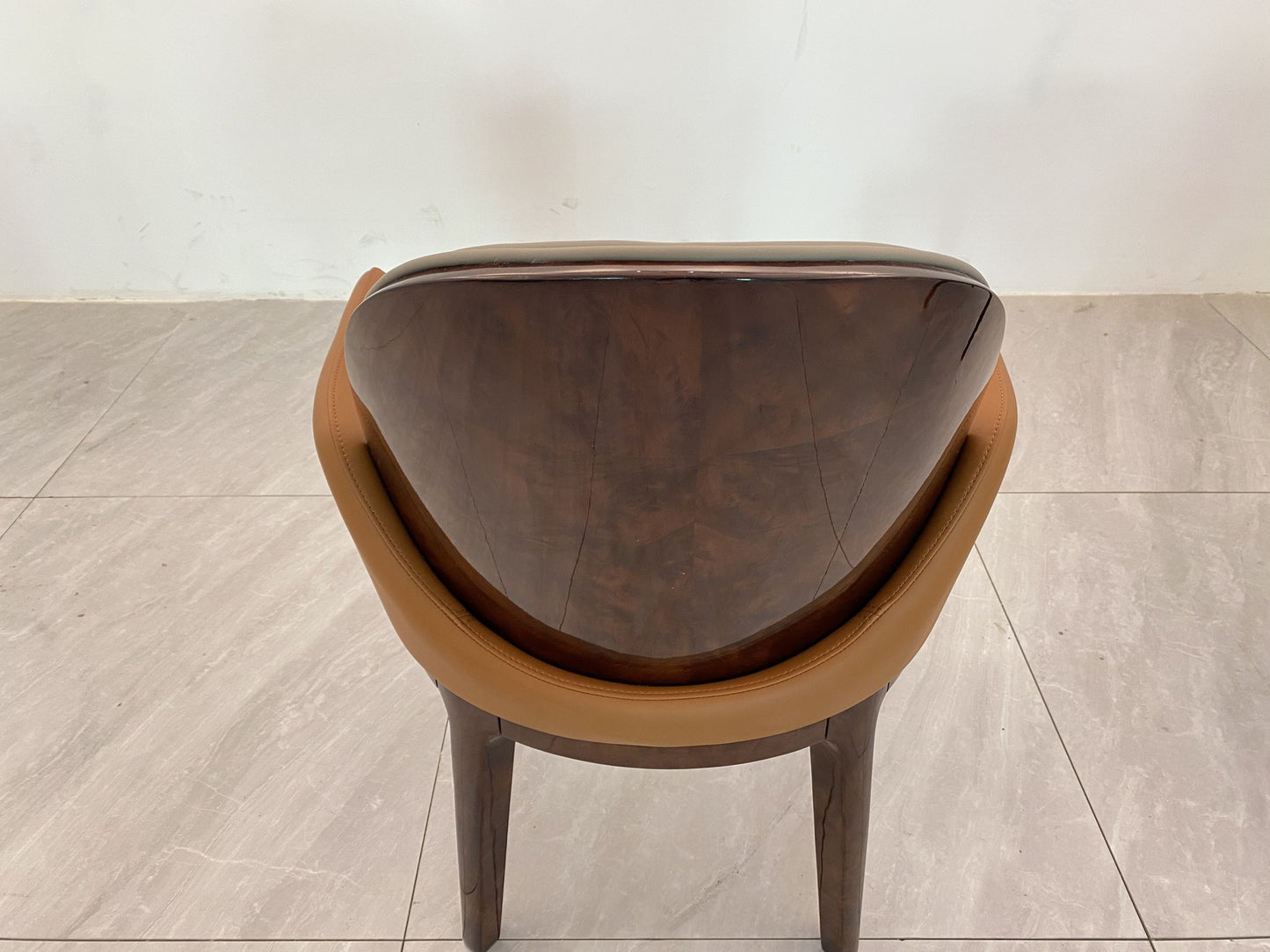 Malvern 椅子是对宾利汽车几何形状的致敬。外部背面贴有暖灰色提琴背梧桐、烟熏枫香或毛刺胡桃木石南根。织物或皮革覆盖的替代版本。 |