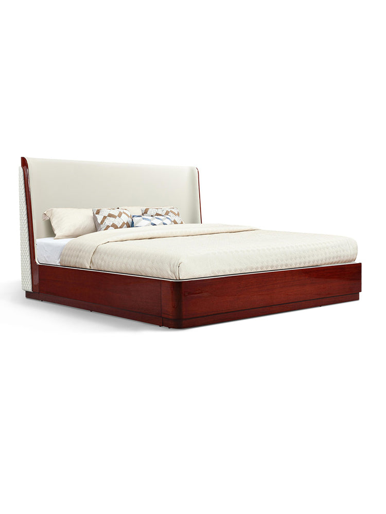 description | The Richmond bed exemplifies the supple elements and stylistic principles characteristic of the line. Unrivalled comfort is created by its roomy design in which the masterfully crafted materials play a prime role. The unique and elegant double shell – covered in quilted leather or precious briar root – encompasses the headboard lined with iridescent sand-coloured satin wool. The finish is enhanced by the finely embroidered Bentley logo. |