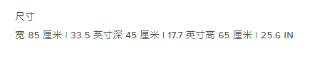 Size | W 85 CM | 33.5 IN D 45 CM | 17.7 IN H 65 CM | 25.6 IN |