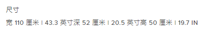 Size | W 110 CM | 43.3 IN D 52 CM | 20.5 IN H 50 CM | 19.7 IN |