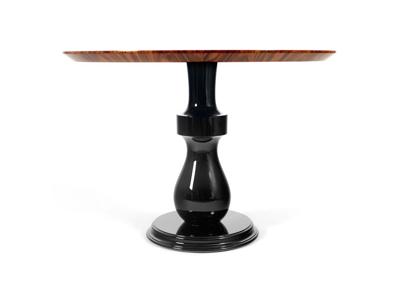 description | Colombos is the perfect pedestal table for a living room, hallway, entrance or lobby. This very stylish pedestal table is a perfect table to display a beloved collectible, books or perhaps a vase with flowers. Colombos is so functional that can also be a coffee or a tea table! A single center column, with a pedestal base in a simple and delicate silhouette, that brings a new look to a very classic shape. The tabletop is available in either rosewood or palisander. The single center column is available in either beech, mahogany or walnut lacquer finished in black or white. |