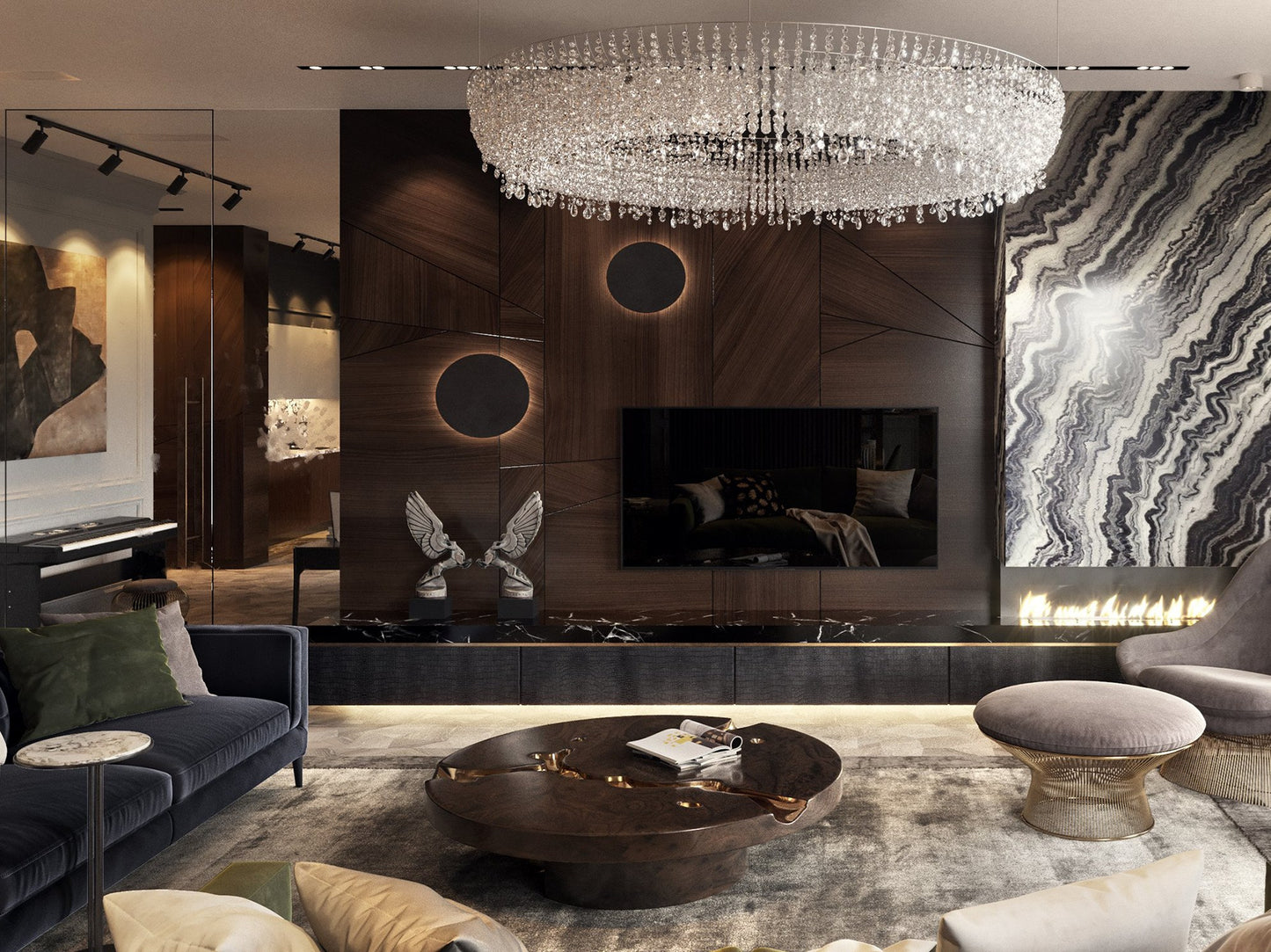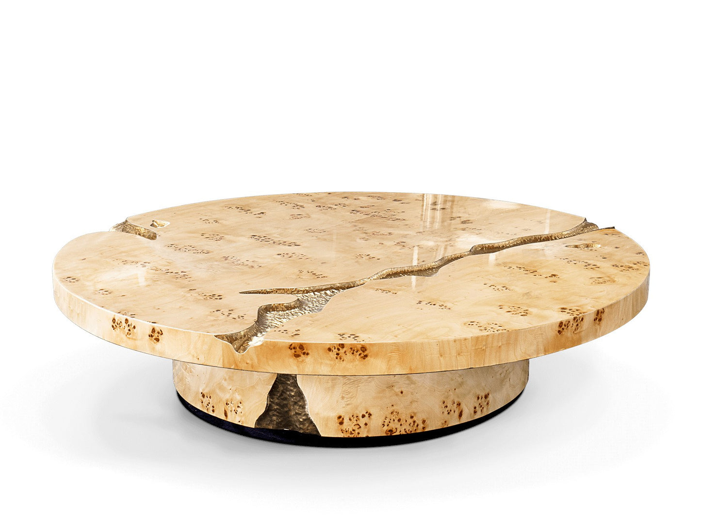 description | Great Empire’s take centuries to build, and those who rise after taking a fall find their true strength. Great decisions are taken around powerful tables among determined minds. The Empire coffee table symbolizes generations of gatherings and decisions, both in times of celebration or tension. Its cracks reflect tough times, revealing a gold interior in a manifesto towards power. Flawless and bright, the remaining surface points towards a thriving future, reminding one to toast to prosperity. |