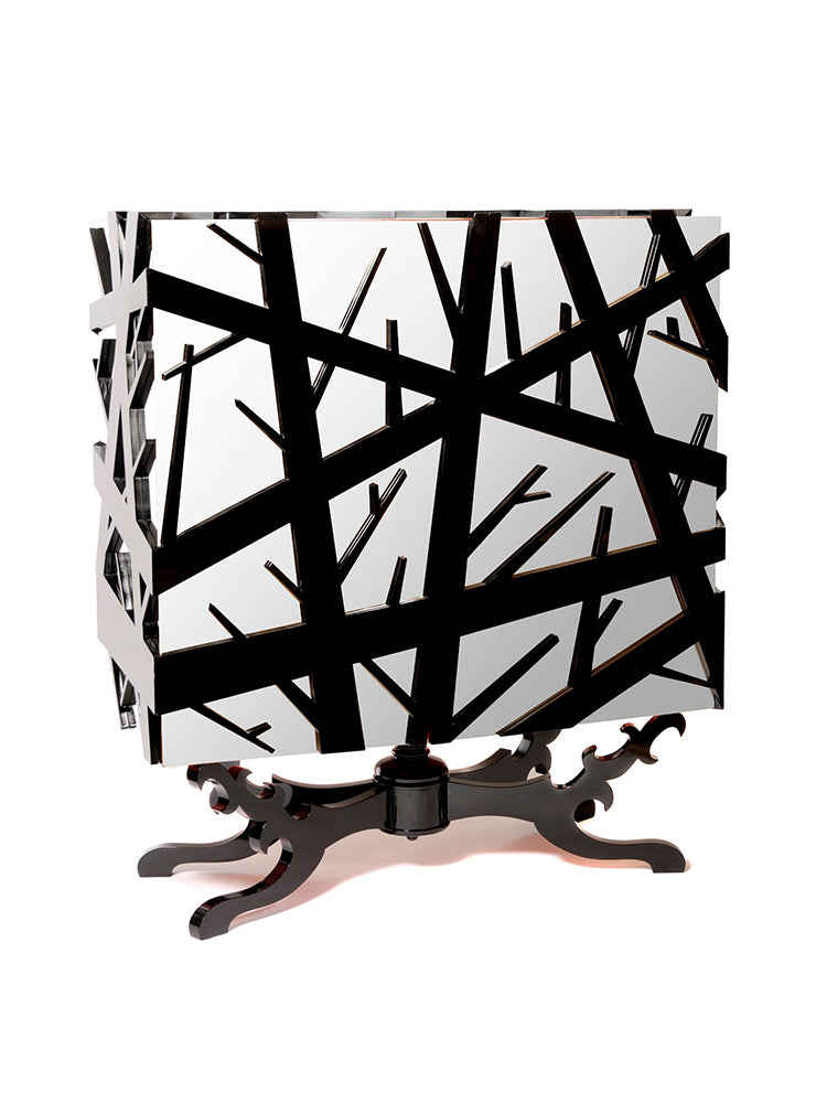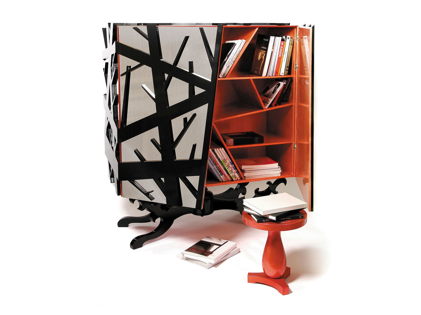 description | We have been solidly building our design pieces through innovation by incorporating the idea of transformation and reinvention. Giving preciousness to the banal use of furniture, day-to-day or common materials carries not only the creativity of Forest, but also distinctly Boca do Lobo’s characteristics – the colors, the mixtures of materials, the creative chaos, and the triumph of the simple solutions. Bookcase has a wooden structure, which is covered with a special mesh. The base is carved from mahogany and the interior is compartmentalized with angling shelves covered in gold leaf finished with a translucent orange high gloss varnish. |