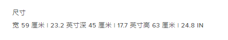 Size | W 59 CM | 23.2 IN D 45 CM | 17.7 IN H 63 CM | 24.8 IN |