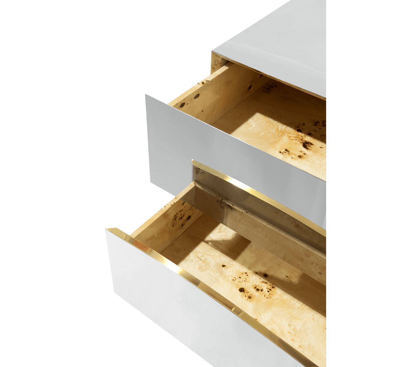 description | Inspired in the dissolution of soluble rocks such as limestone, dolomite and gypsum, the Lapiaz Nightstand, is characterized by the idea of an underground effluence where luxury flows. Resembling a freshly cracked stone, the this luxury bedsidetable boasts a unique golden interior, capable of filling any room with energy and life. This high-end luxury bedroom furniture piece features unique details achieved through the skill of our talented artisans, ensuring that it stands-out in any modern bedroom setting. |