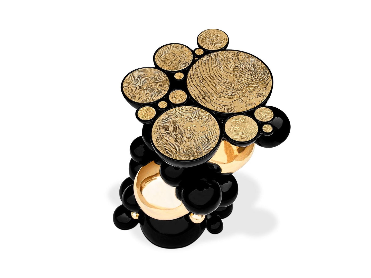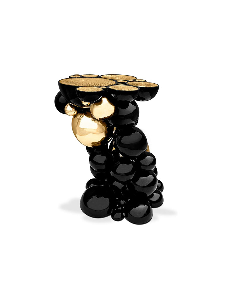 description | Mixing the old with new, Newton side table is an insightful combination of grandeur and playfulness. This piece is so versatile that can be easily converted into a stool. Its structure is made from aluminum, lacquered in black, with a high gloss varnish. This side table’s design is expressive and forward thinking with its gold plated spheres and semi spheres. Conceived to create a particular atmosphere, this futuristic side table has an unmistakable presence beyond its mere functional characteristics. Newton side table adds a classic yet modern appeal to any setting specially if you place it between two contemporary armchairs. |