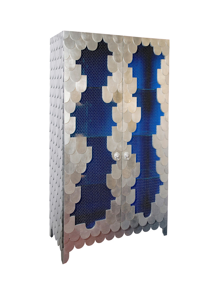description | Intricately designed, this cutting edge piece was inspired by our city and the rhythmic undulating of its black slate rooftops and building facades. Through reflection ingredients such as irony, drama and extravagance were added and Oporto came to life. With a focus on authenticity and quality, we produced this piece that is as true to form as it is to function, reflecting a refined sense of luxury and character that only improves with time. Cabinet in wood, finished with silver leaf. Its base has a metal reinforcement. |