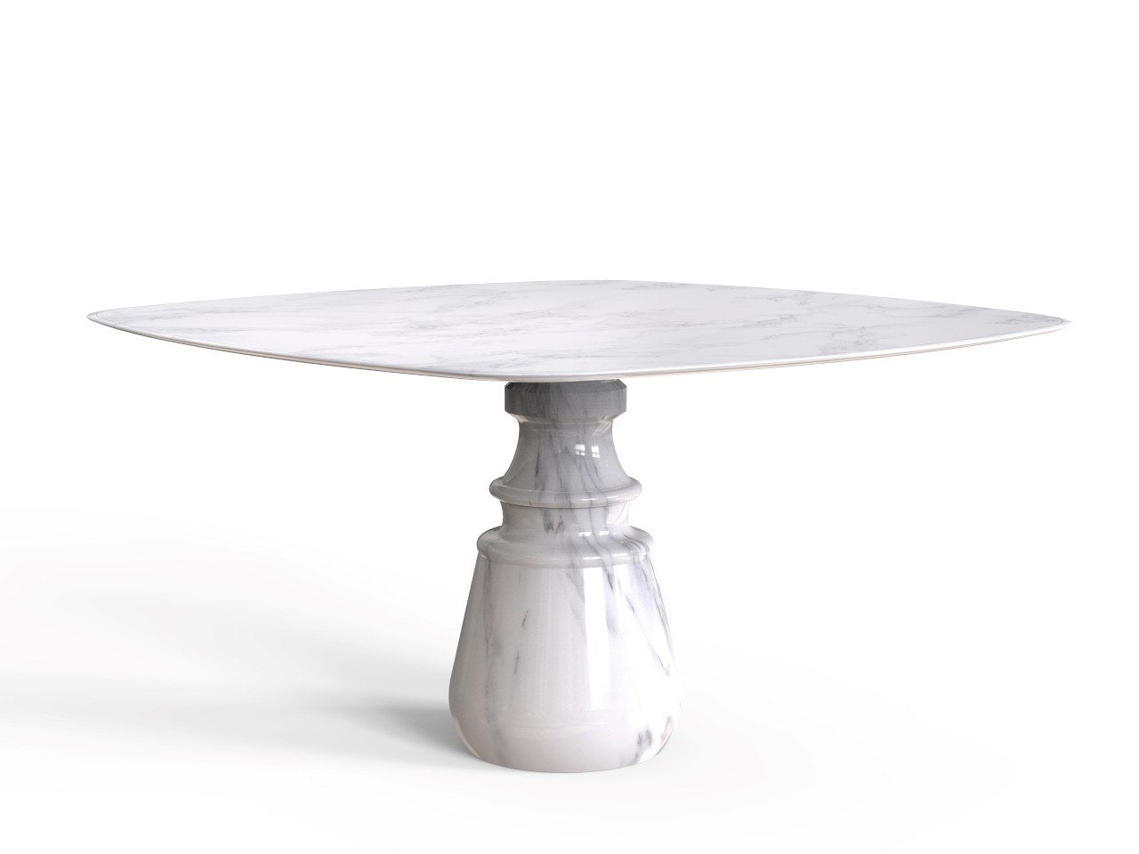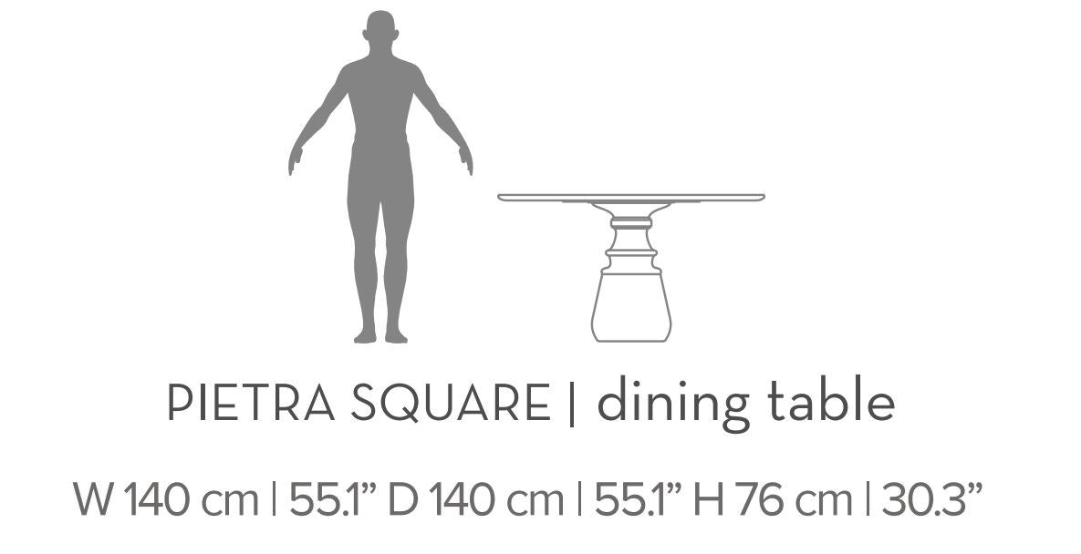 description | Playing with function and sculptural form, Pietra dining table shapes a timeless experience through its classical aura and finest marble. Reminding the renaissance era, its square top gently lies in one robust marble column, conceived from a solid block hand-sculpted and turned to create different details for additional texture. A noble material carved in Boca do Lobo workshops, conceiving a statement white table ideal for a grand entryway, elegant dining rooms or other open settings. Ideal as a four-seater table, the contemporary feel of Pietra is effortlessly stylish and it is suitable for indoor or outdoor use. |