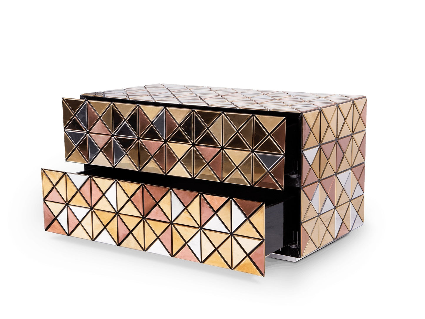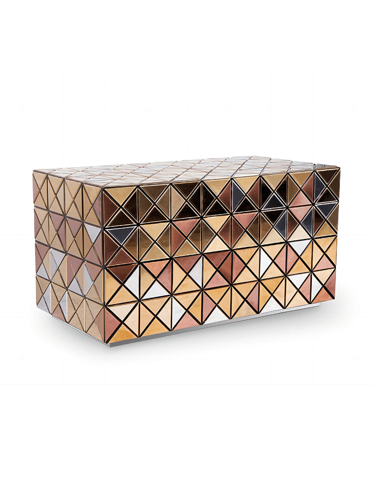 description | Boca do Lobo, an harmonious agreement and concord of Portuguese design, that brings an unique intensity to life. In a digital era, the pixel is king, described as the smallest single component of a digital image. Embracing real and virtual the PIXEL nightstand is ideal for those looking for a metallic ambience in the bedroom. With two drawers it is perfect to keep your bedside books and computer or tablet coexiste. |