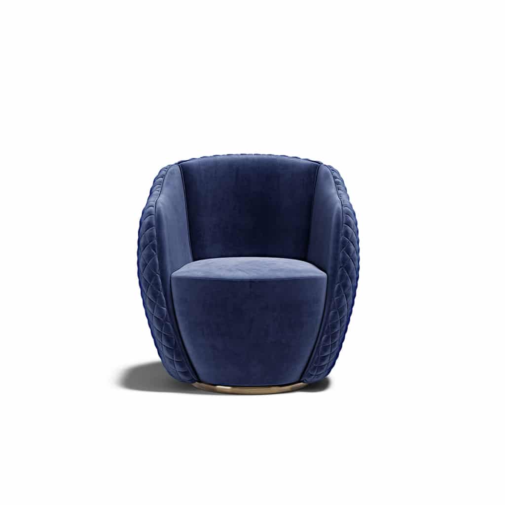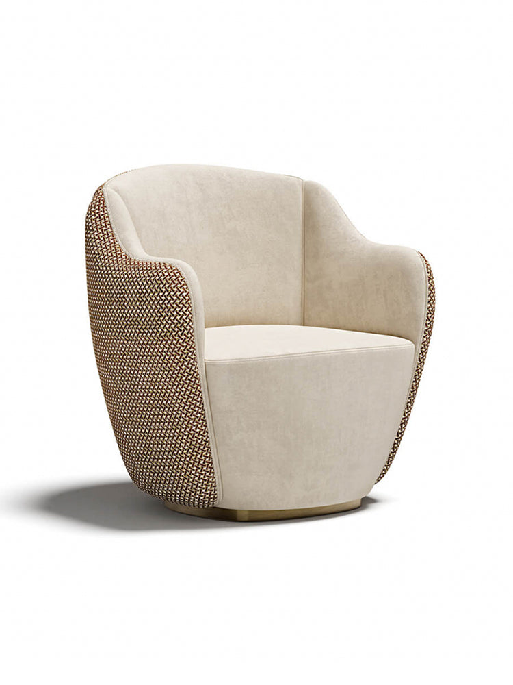 description | Characterised inside by the inviting softness of the seat and backrest. Rounded metal finishing rounded base. The family of products includes an armchair, and a lounge swivel armchair, both with the same features and in different sizes. |