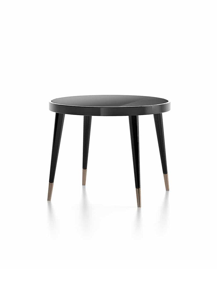 description | A real jewel-accessory created with the same focus on proportions and crafting techniques. With its Modernist minimal design and use of materials, the Black Tie table has a wooden frame which accommodates a glass round top back-painted in lacquered finishing. Metal finish feet. |