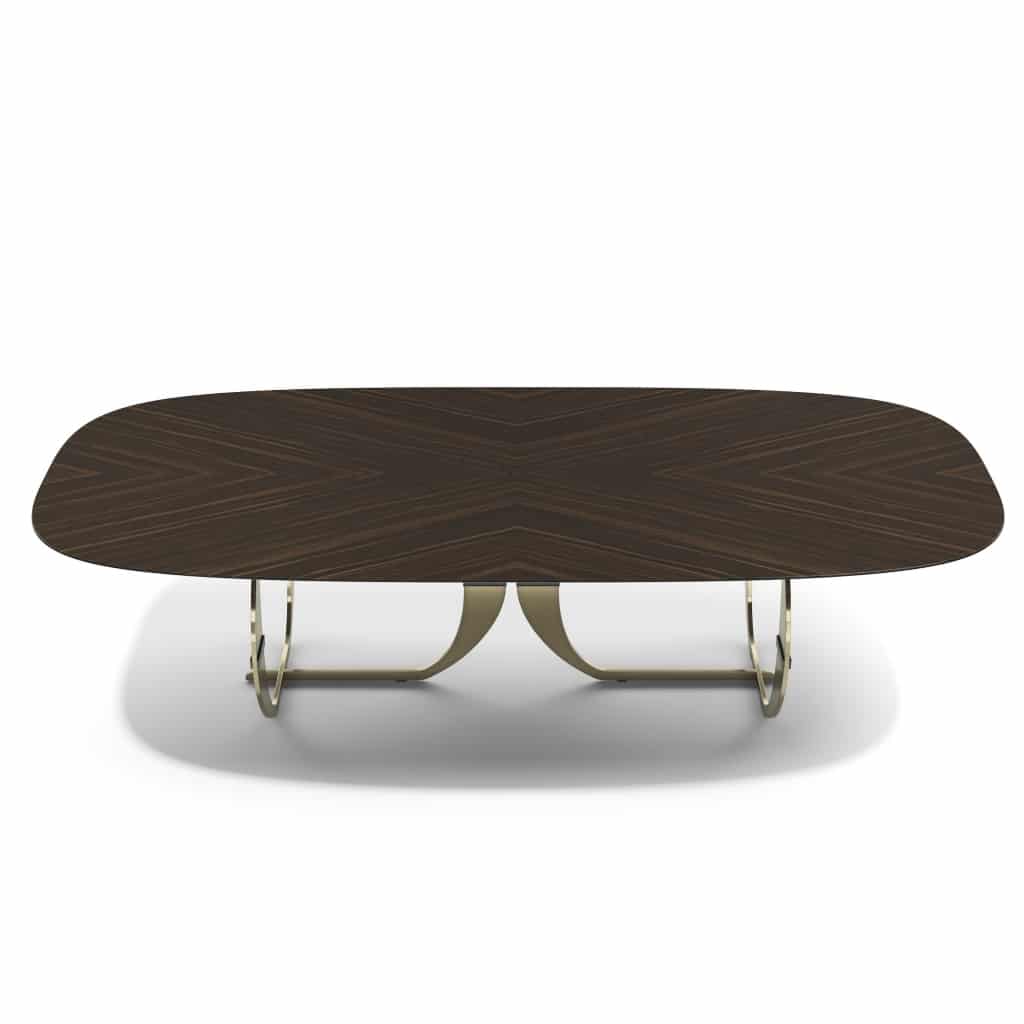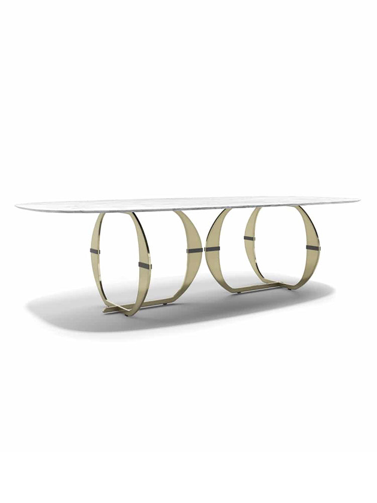 description | The game of curved volumes expressed by the solid sculpted presence of the Convivio legs, brings out the skilfully carved top, with an inclined perimeter edge. Available wooden or marble top. Metal basement with lacquered mat insert. |