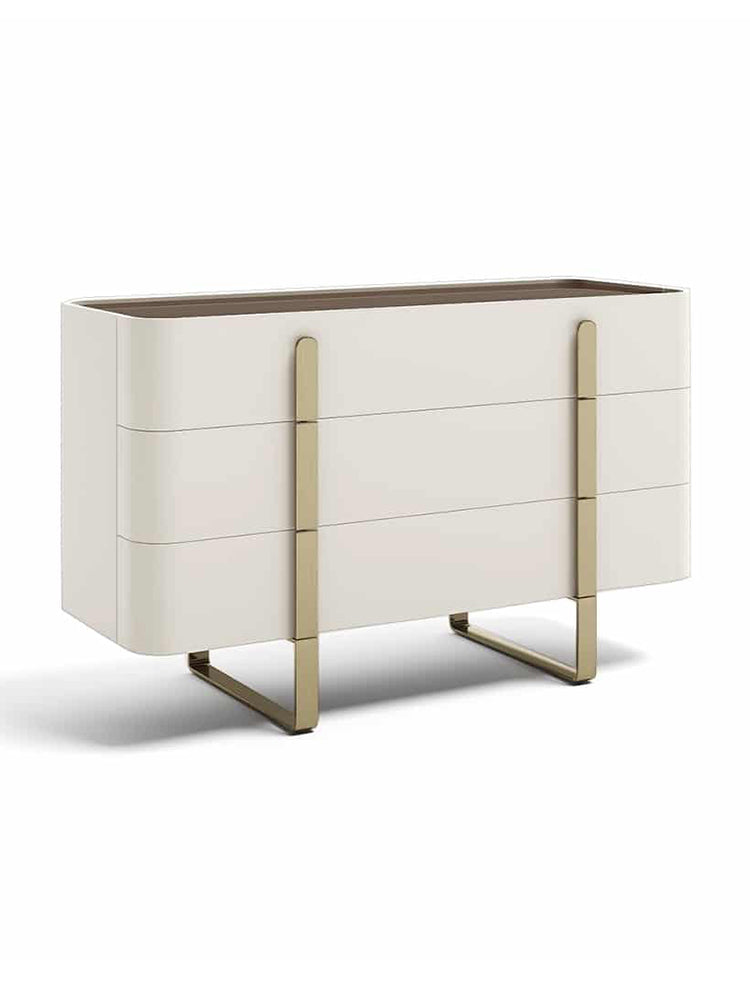 description | Beige taupe lacquered frame. Steel handle and basement. Wooden top. Three drawers. Not available wooden or black lacquered structure. |