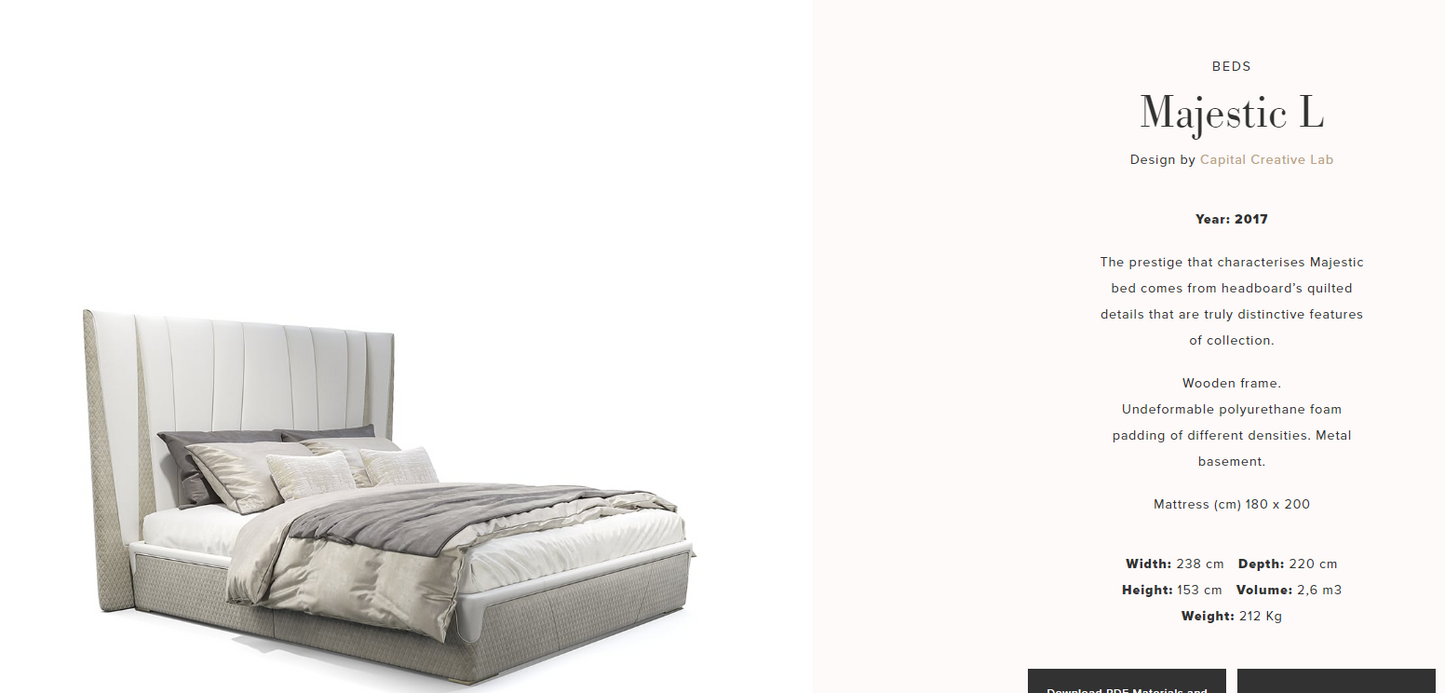 description | The prestige that characterises Majestic bed comes from headboard’s quilted details that are truly distinctive features of collection. |