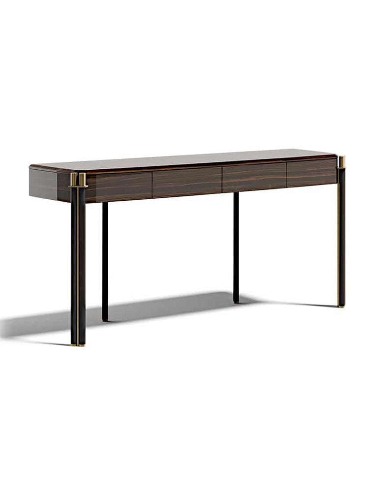 description | A consolle that completes the Mayfair collection. Minimal lines and an essential design for a product that is perfect for different areas of the house from the living area to the night area. Wooden structure with n. 2 drawers. Legs with metal details and inserts. |