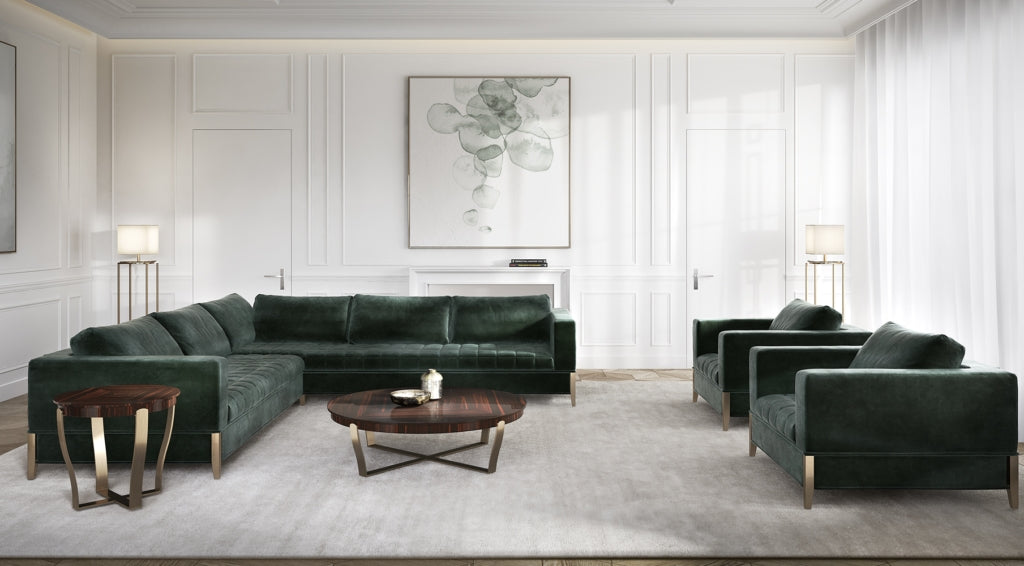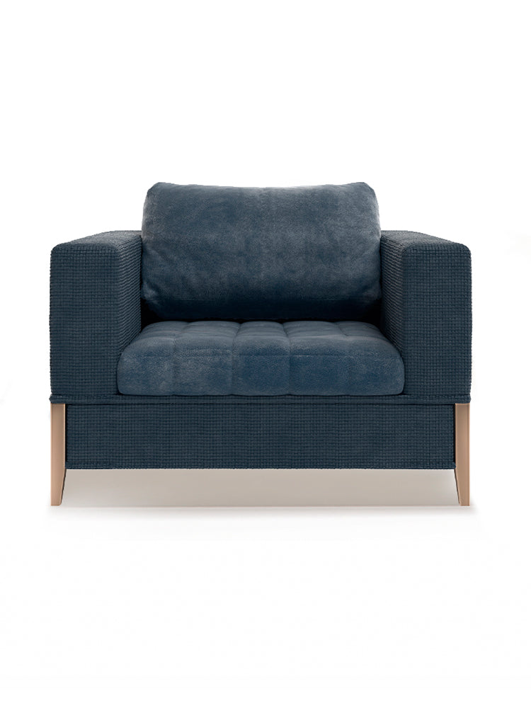 description | Wooden frame. Undeformable polyurethane foam padding of different densities. Metal feet and details. |