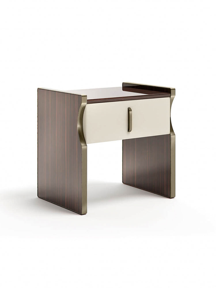 description | Wooden structure. Metal handles and details. N. 1 drawer in leather. |