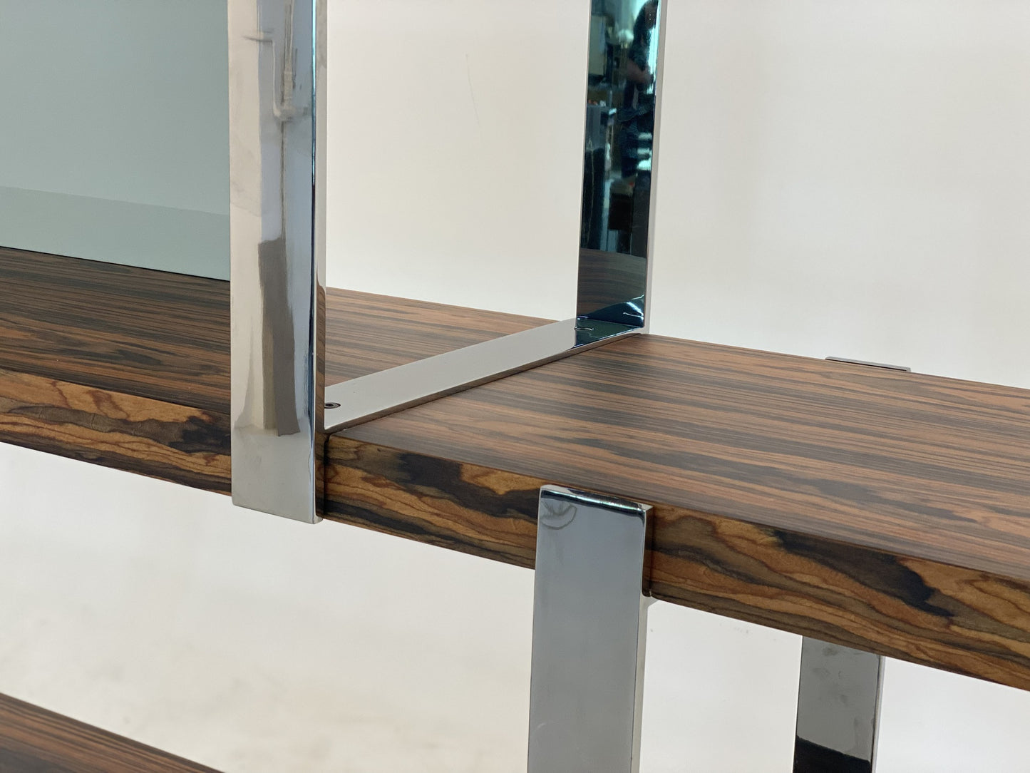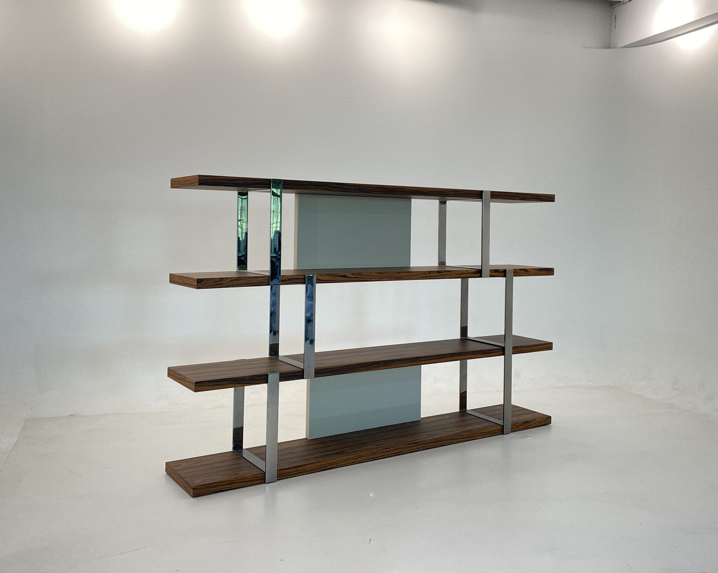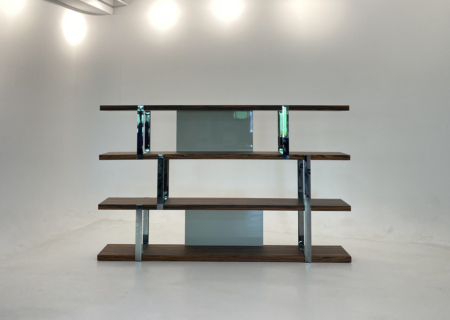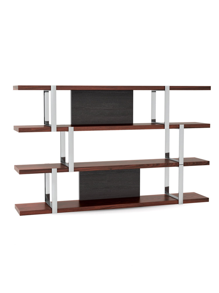 description | The Dalton Chrome bookcase, with its highly sophisticated contemporary look and apparent formal simplicity, stands out for its stylish combination of finishes and materials.Conceived to characterise the living space with character and personality, Dalton Chrome features a Glossy Chrome metal frame available in two different versions: with thick shelves in sanded black oak matched with glossy lacquered Warm Grey or Granite back panels, or with shelves in Santos palisander with glossy lacquered White or Granite back panels.A distinctive furnishing element sporting a bold, rigorous horizontal design punctuated by vertical metal segments, it cleverly matches and offsets different materials and finishes, adding a note of elegance to the design of the project. |