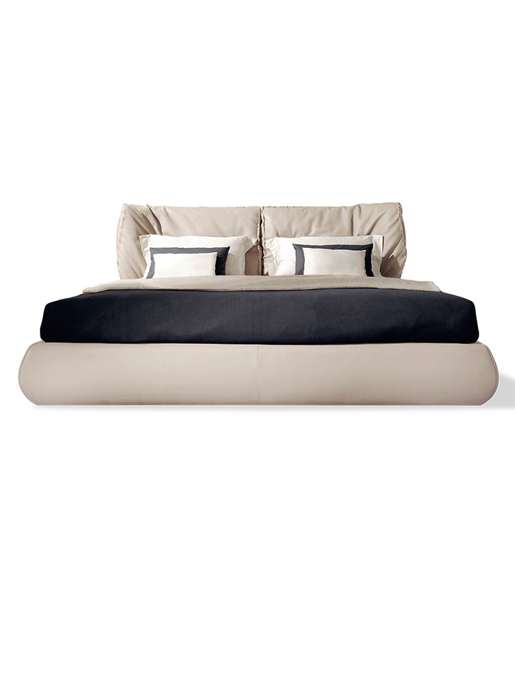 description | Cannes bed has at the end of the headboard a series of curved plywood elements with an oval section covered in leather or fabric by skilled craftmen. Two soft cushions with exclusive tailored seams rest on the curved elements of the back. It can be easily inserted in contemporary villas but also in apartments located in ancient buildings. |