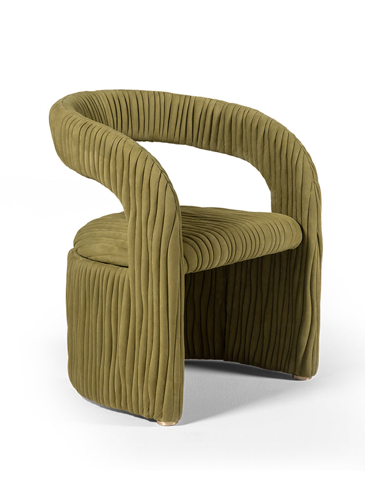 description | The sinuous shape of the armchair Leaf is reminiscent of the foliage. It is completely upholstered with embroidered leathers or fabrics and a wavy surface, embracing the whole structure, characterizes this armchair. |