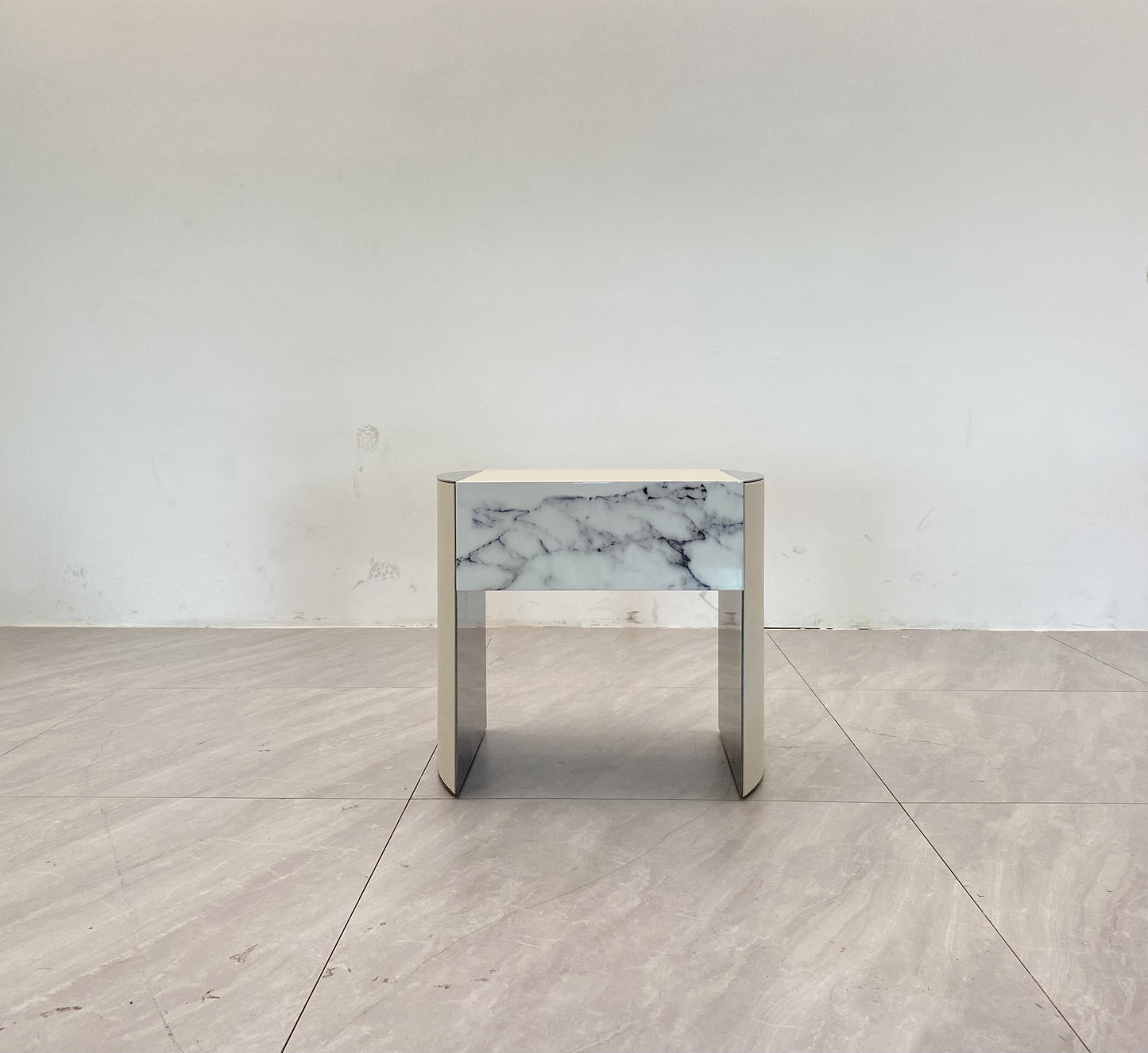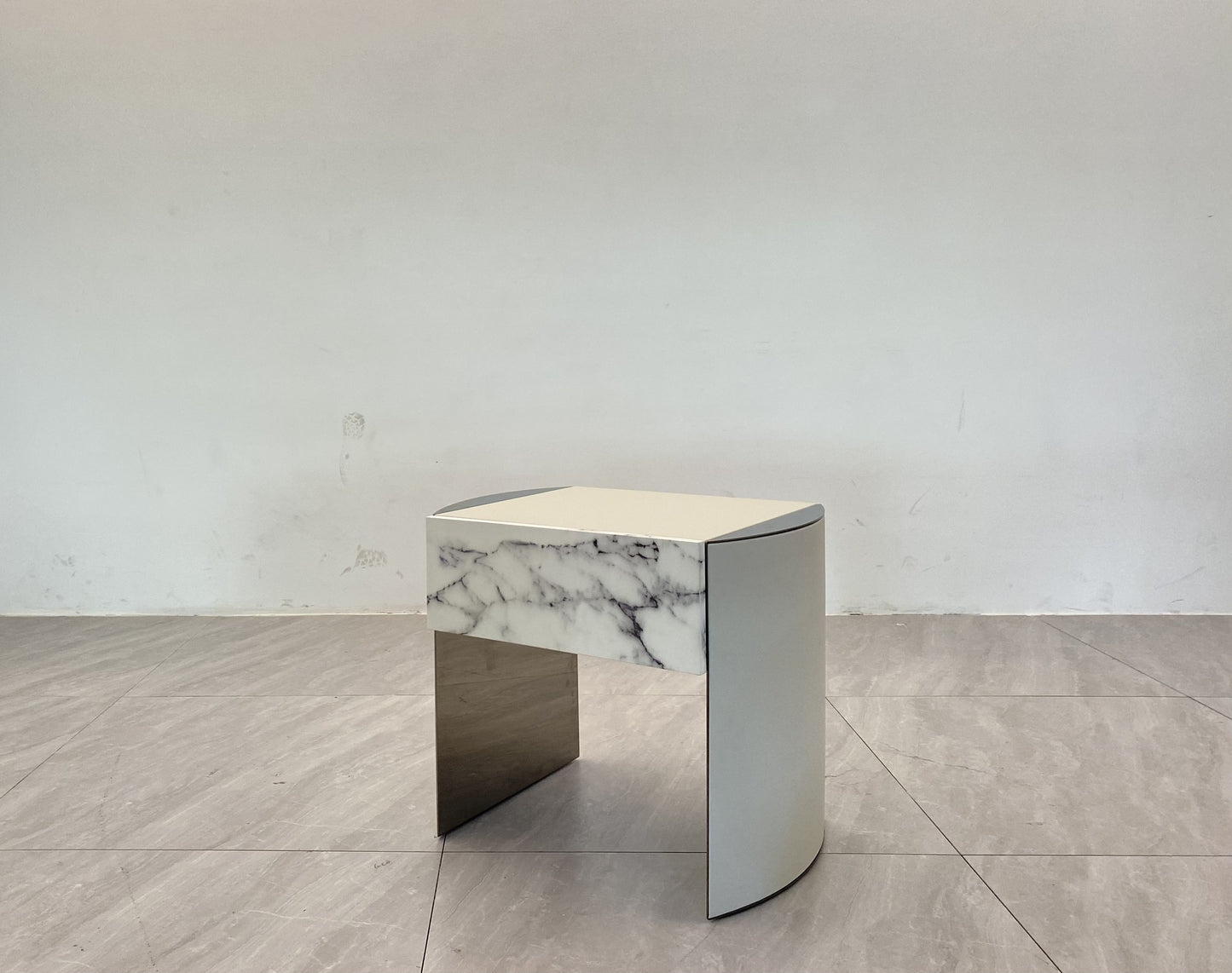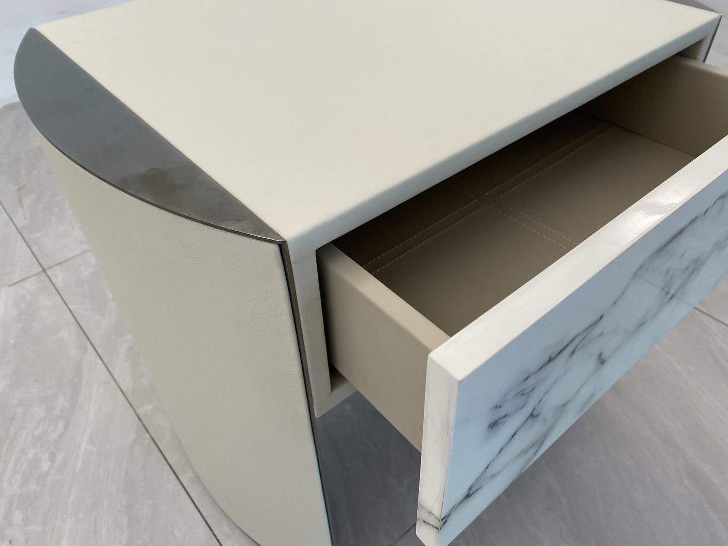 description | Night table Linfa is an example of the combination of different raw materials able to enhance preciousness to this piece of furniture: marble inserts become drawer frontals that match with the rounded lacquered structure while metal parts become decorative details that separate themarble from the structure itself. It is highly recommended for bedrooms. |