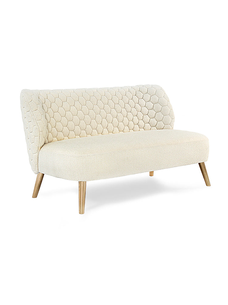 description | The enveloping and comfortable sofa Marilou can be upholstered only with selected textured fabrics. The backside is characterized by a quilting embroidered with hexagonal design. The bronze metal feet are realized with the ancient sand casting technique that conveys an artistic touch to the sofa. |